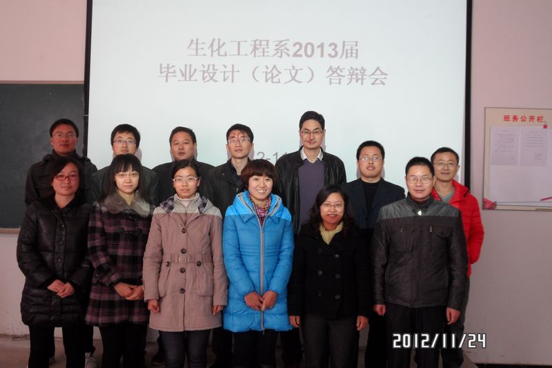 毕业设计及答辩是大学生培养过程中非常重要的内容,是教学工作的重要环节,也是引导学生综合运用专业知识分析、解决问题能力的关键步骤。2012年11月24日,在经过了近两个月紧张有序的毕业设计(论文)研究之后,生化系2013届毕业设计(论文)答辩工作圆满落下了帷幕。