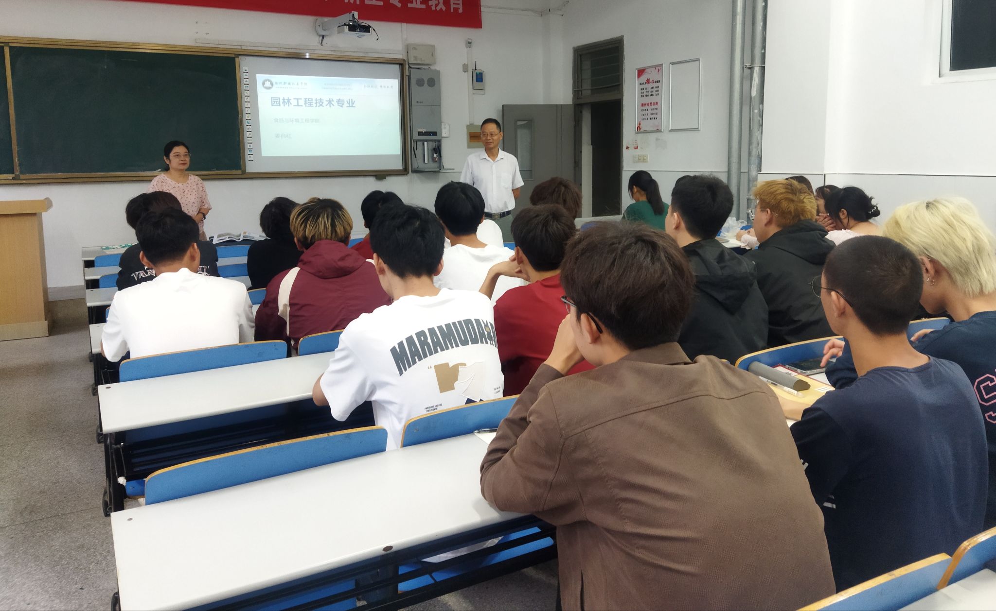 在园林技术及园林工程技术专业教育现场,专业负责人涂清芳副教授、姜自红副教授分别从行业背景、专业发展、人才培养方案、课程设置、就业方向、技能大赛和专升本情况等几个方面进行详细介绍。并向新生展示了优秀竞赛作品、园林设计作品等,引起了学生浓厚的兴趣,加深学生对专业的了解。
