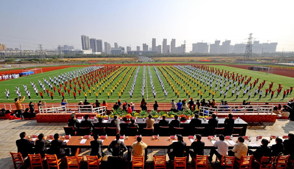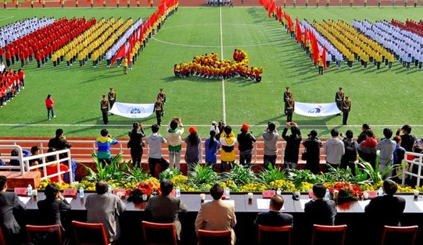 10月31日上午,awc777万象城娱乐官网第九届运动会开幕式在新校区体育场隆重举行,生化系师生80余人参加了开幕式表演。