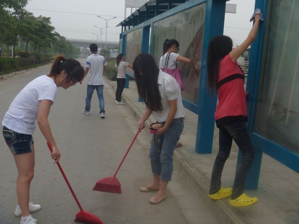 为加强对我系学生入党积极分子的思想教育,提升他们为人民服务的大局意识,生化系团总支于6月17日上午组织十余名入党积极分子到腰铺公交站台开展义务清扫活动。