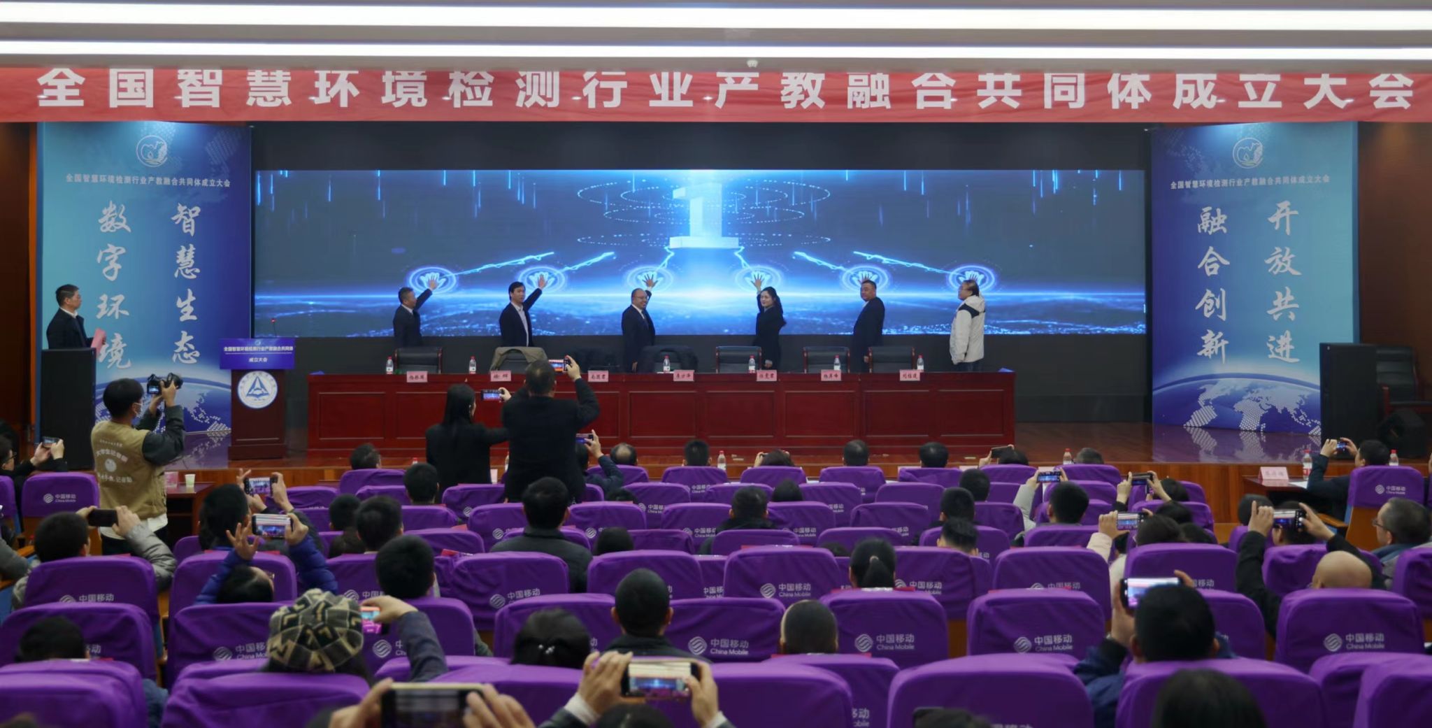 在大会开幕式上,安徽职业技术学院党委书记李方泽、合肥工业大学资源与环境学院党委书记南国君、安徽环境科技集团股份有限公司党委副书记、总经理杨岸峰、安徽元琛环保科技股份有限公司董事长徐辉、中国科学技术大学二级教授刘桂建分别致辞,接下来现场举办了共同体成立揭幕仪式,并给理事长单位、副理事长单位和理事单位颁发了聘书。awc官网被聘为理事单位,梁建军院长被聘为理事。