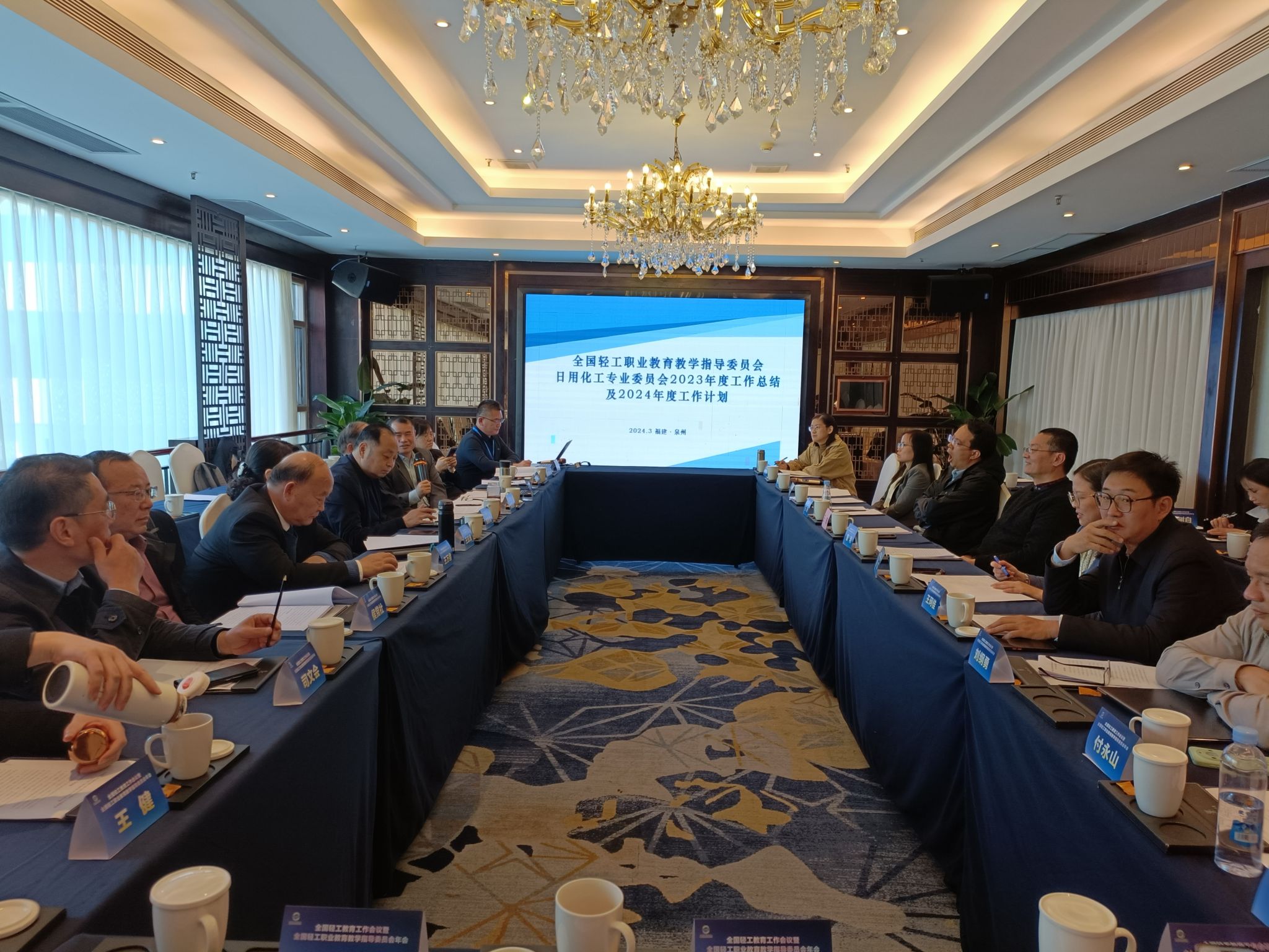 本次会议由中国轻工业联合会党委副书记、教育工作分会主任、轻工行指委主任徐祥楠主持。中国轻工业联合会会长张崇和、教育部职业教育发展中心副主任黄辉、教育部职业教育与成人教育司教学处胡泊、泉州市委常委、晋江市委书记张文贤等领导出席会议并讲话。大会还通报了轻工类专业认证委员会相关情况,表彰了2023年度中国轻工业教育项目申报评审优秀组织单位和先进单位,并为2023年度轻工职业能力评价院校授牌。