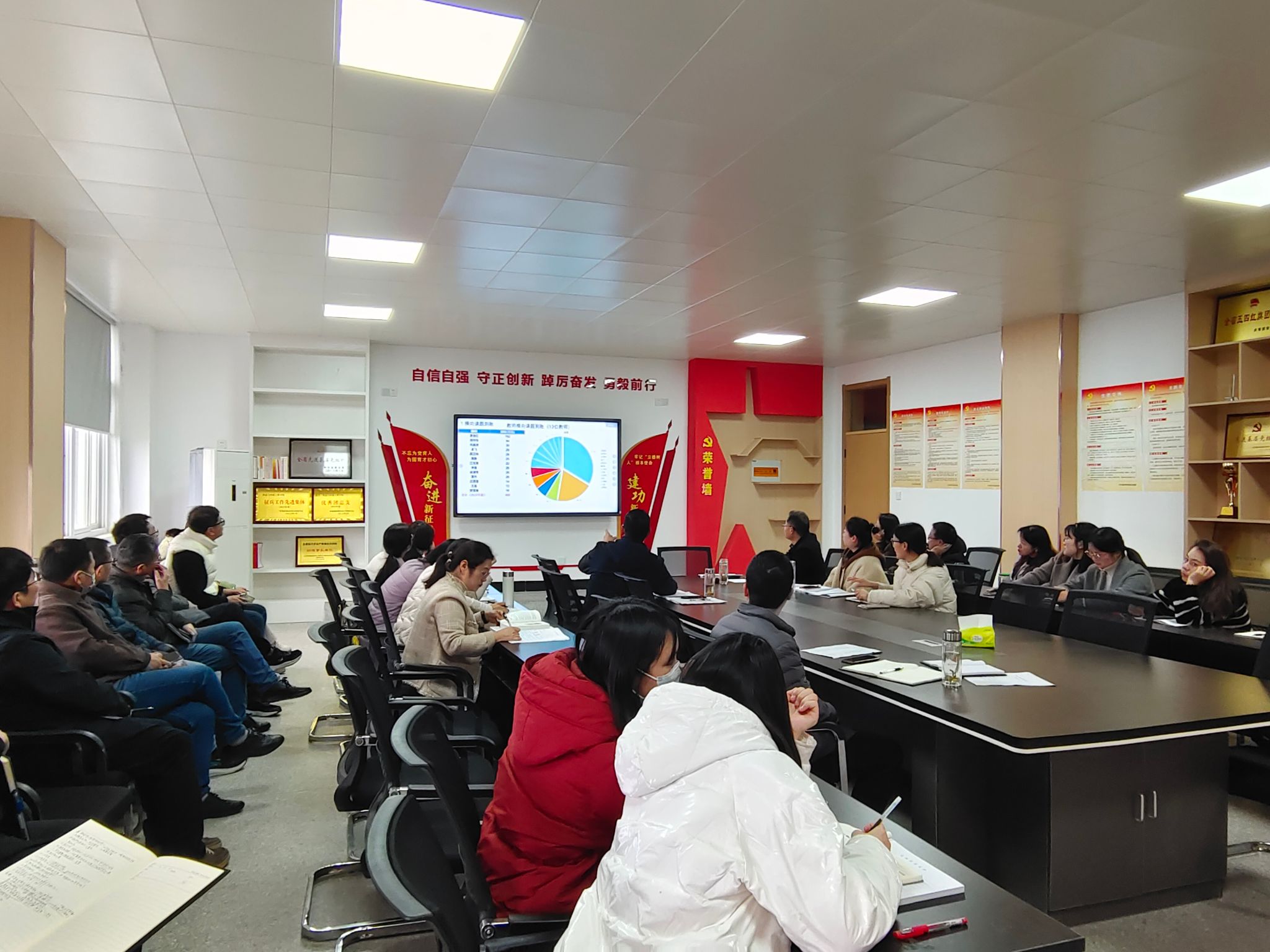 孟飞首先以PPT形式向大家展示了近年来食环学院在科研、人才项目、社会服务、师生竞赛、师资队伍、产教融合、课程建设、教学成果奖等十个方面取得的省级以上成果,并将“双高校”建设目标与食环学院已完成目标作对比,找缺漏短板。肯定了在一些方面中大家所做出的努力,通过列出近几年所取得的成果树立先进典型,发挥示范引领作用。对照学校“双高校”建设43+N个指标体系,结合食环学院实际,把建设“双高校”食环学院可完成的指标逐一分析,并指出可以精益求精,取得更高成果的目标路径。同时也指出现阶段的薄弱项目,引导各位教师重点突破。