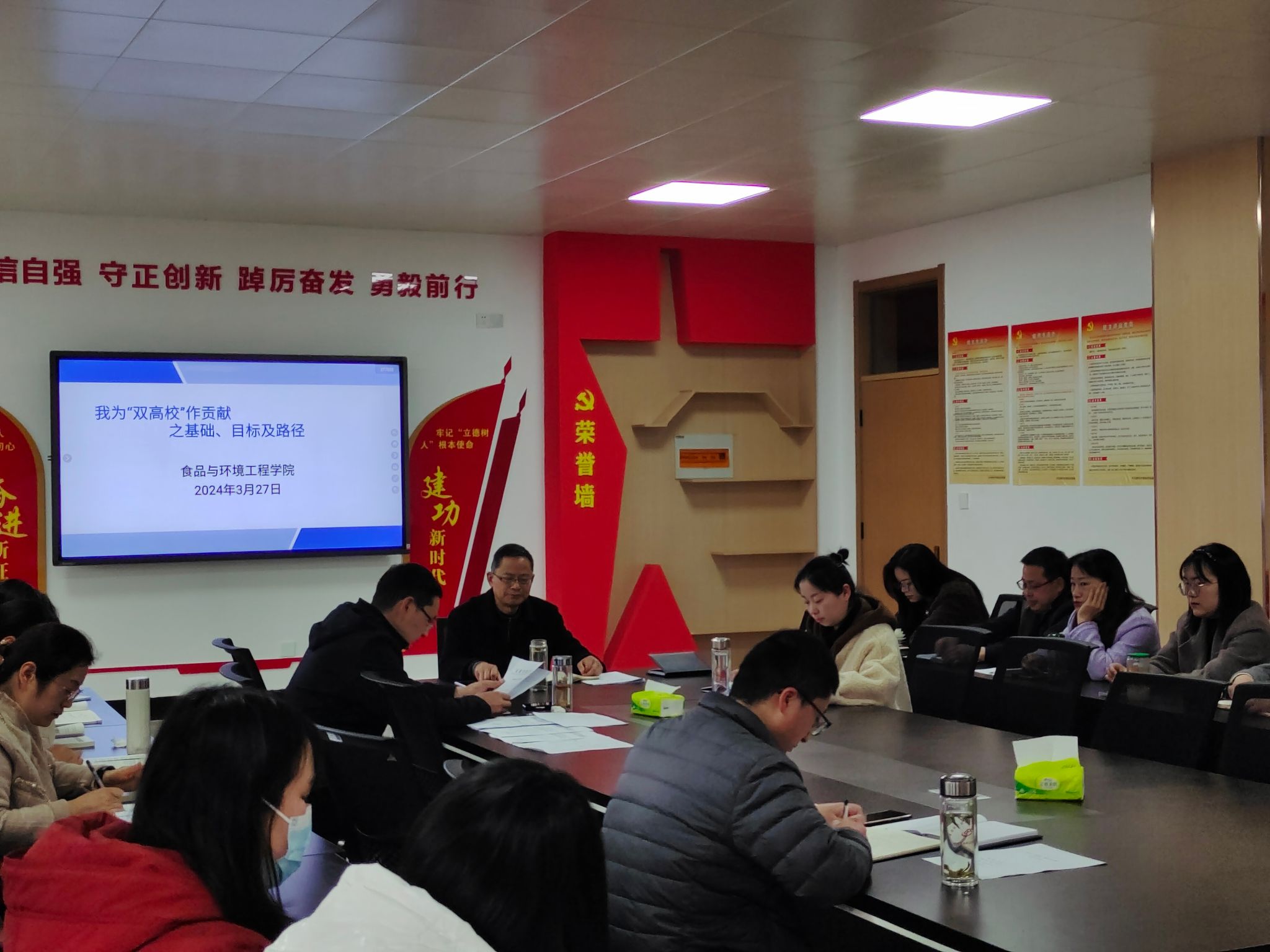 为了更好的推进学校省级“双高校”建设,引导全体教职工明确个人目标,落实落细“我为‘双高校’建设作贡献年度计划书”。食环学院于3月27日下午在2317会议室召开我为“双高校”作贡献之基础、目标及路径专题研讨会,会议由食品与环境工程学院副院长孟飞主持。