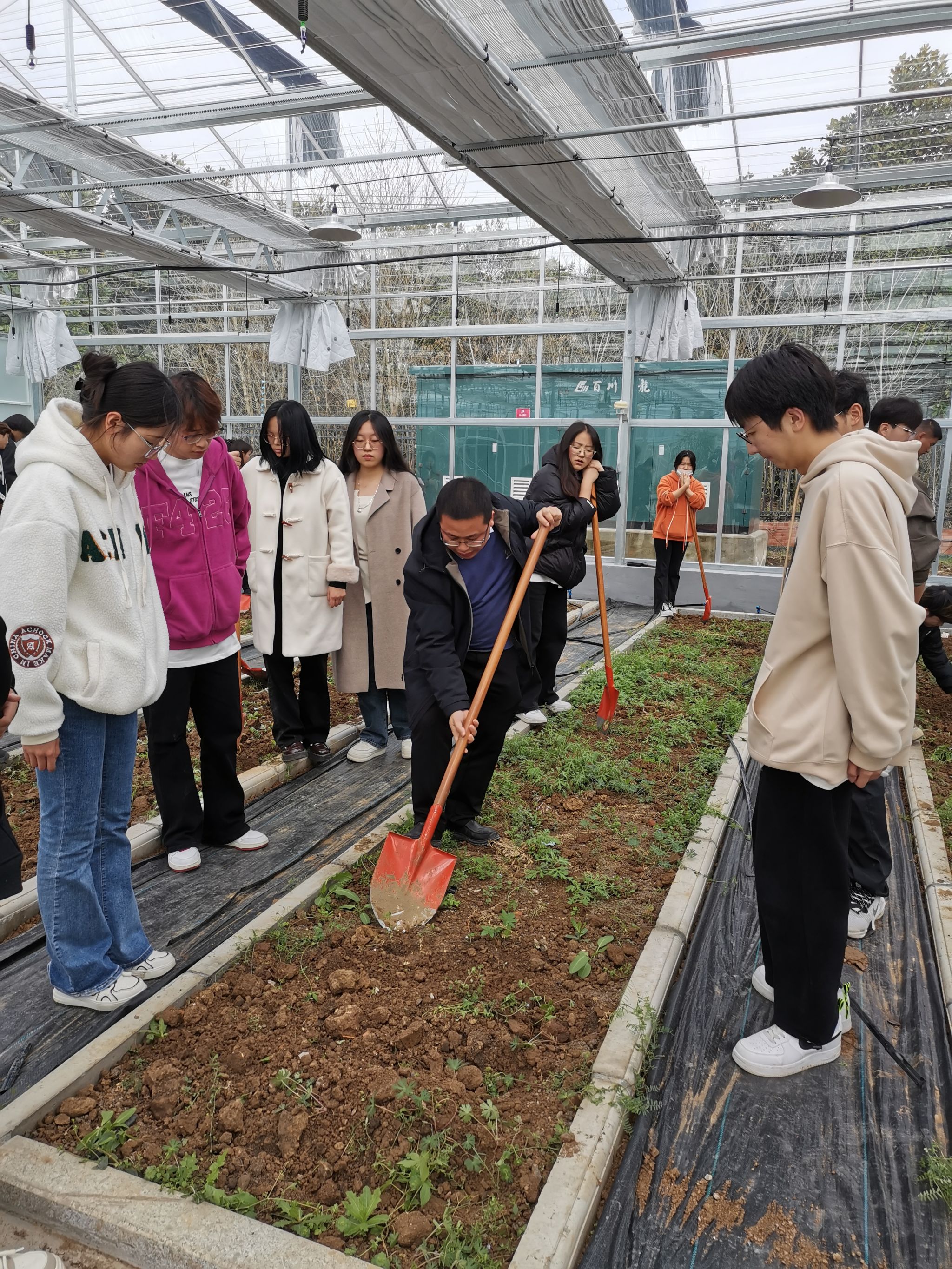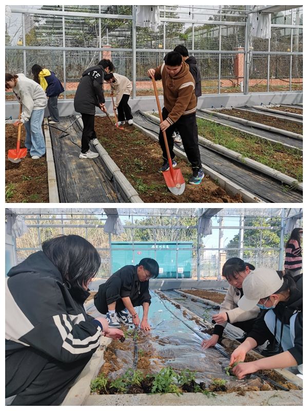 翻土、除草、种菜……在学院大棚基地,23食品生产1班的学生忙的不亦乐乎,园林园艺系江教授在一旁亲自指导。“通过让学生体验农耕生活,亲自动手实践,既能磨炼意志,又非常有意义。”劳动课授课老师李瑞瑞说。