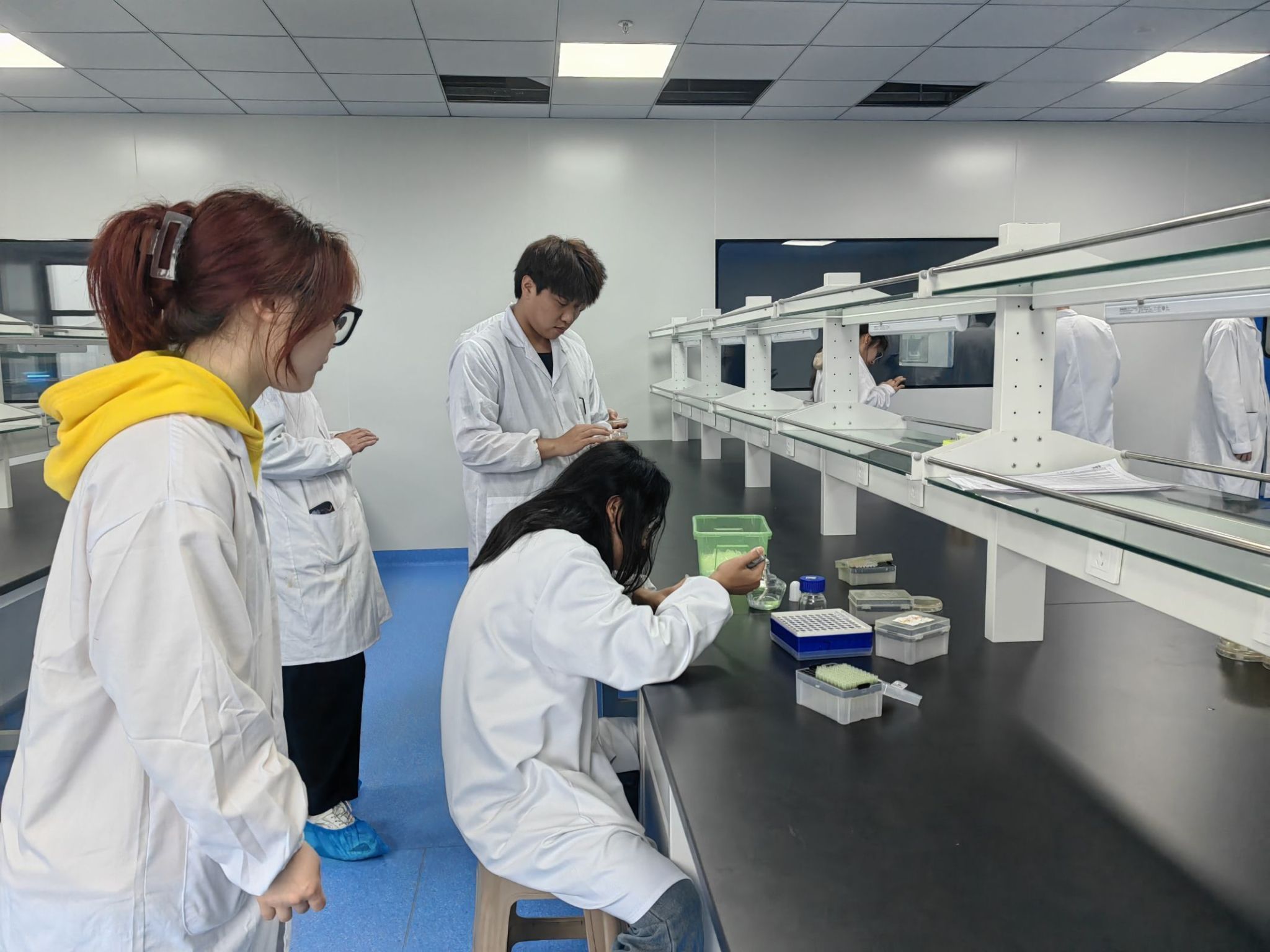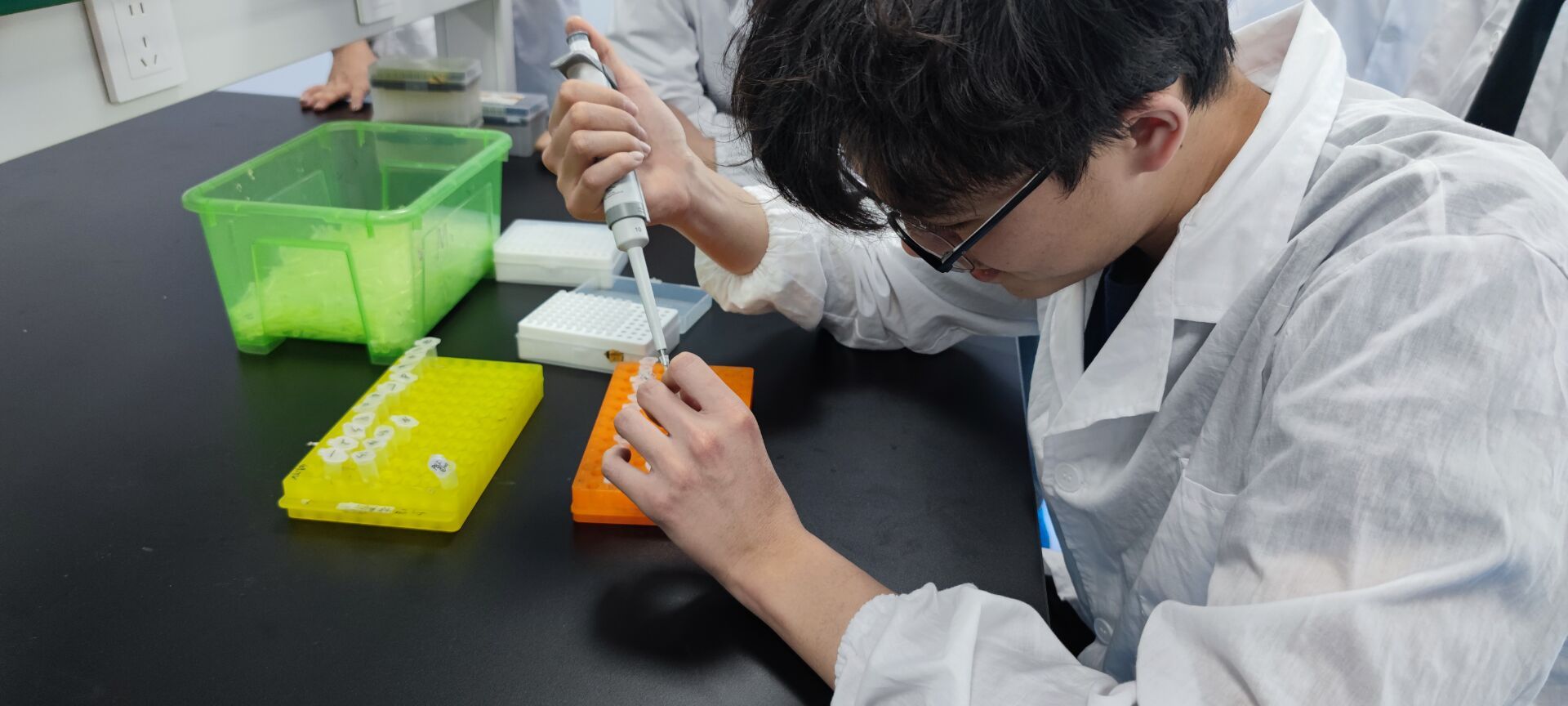 “分离-退火-延伸”三步操作步骤,4月1日,食环学院22通用生物订单班学生一手拿着微量注射器,一手操作离心管,熟练地完成了企业导师布置的生产、检测任务。在接下来为期一个月的时间里,22级通用生物班36名学生在滁州通用生物有限公司开展了实践教学活动。
