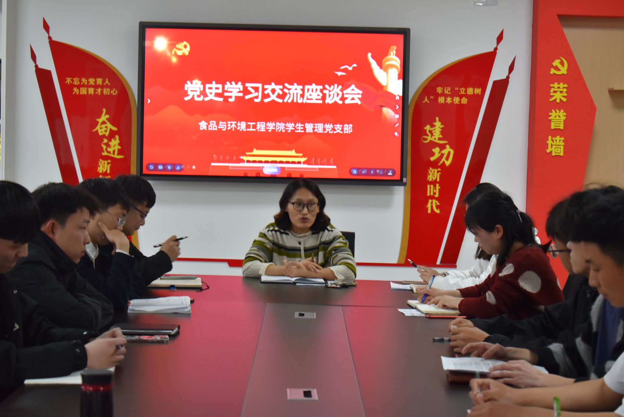 为推进党史学习教育工作进一步走深走实,食环学院学生管理党支部联合学院团总支于4月22日开展党史学习交流活动。活动由学生管理党支部书记李瑞瑞主持,支部全体党员、入党积极分子代表参加了分享交流。