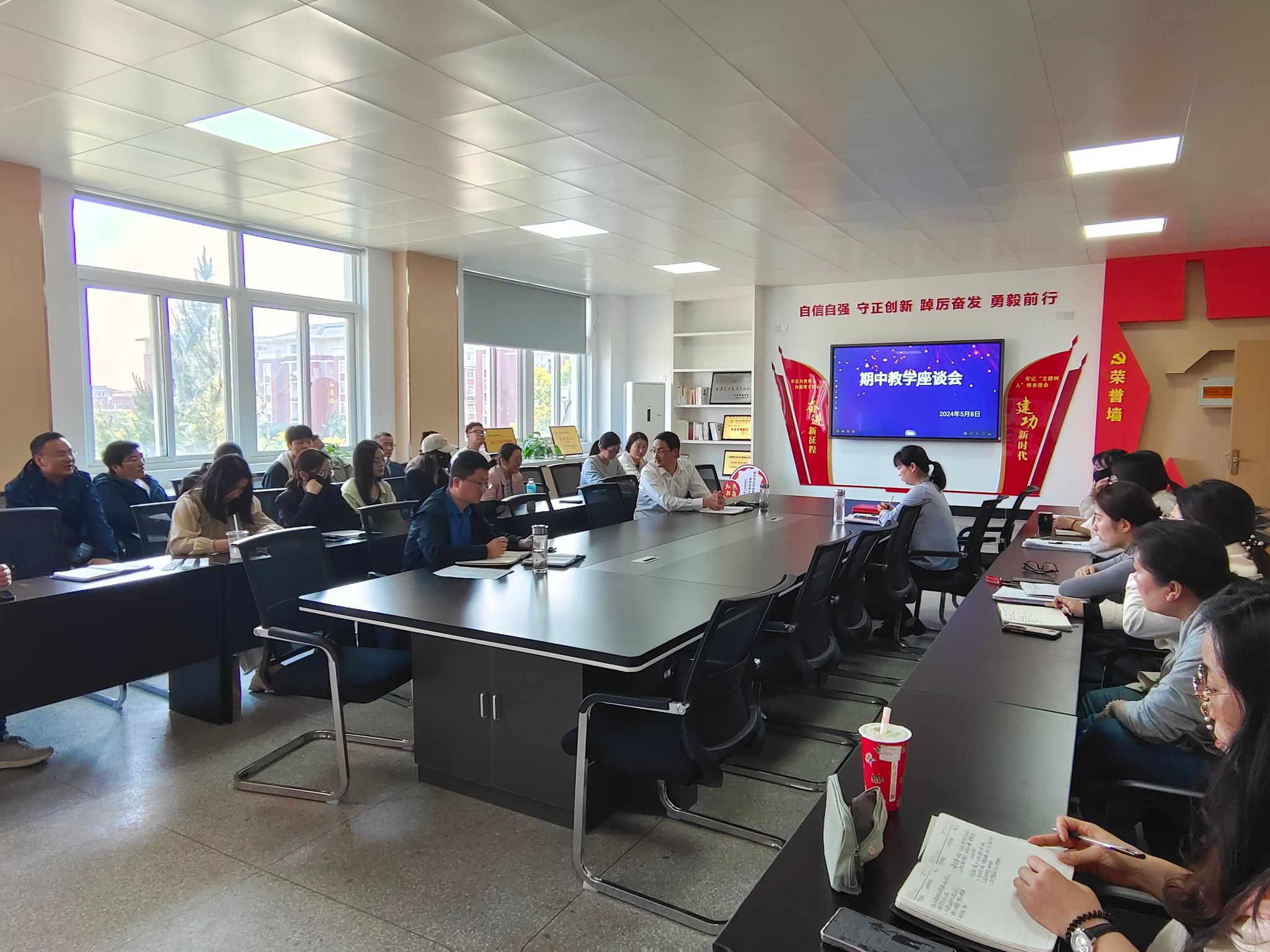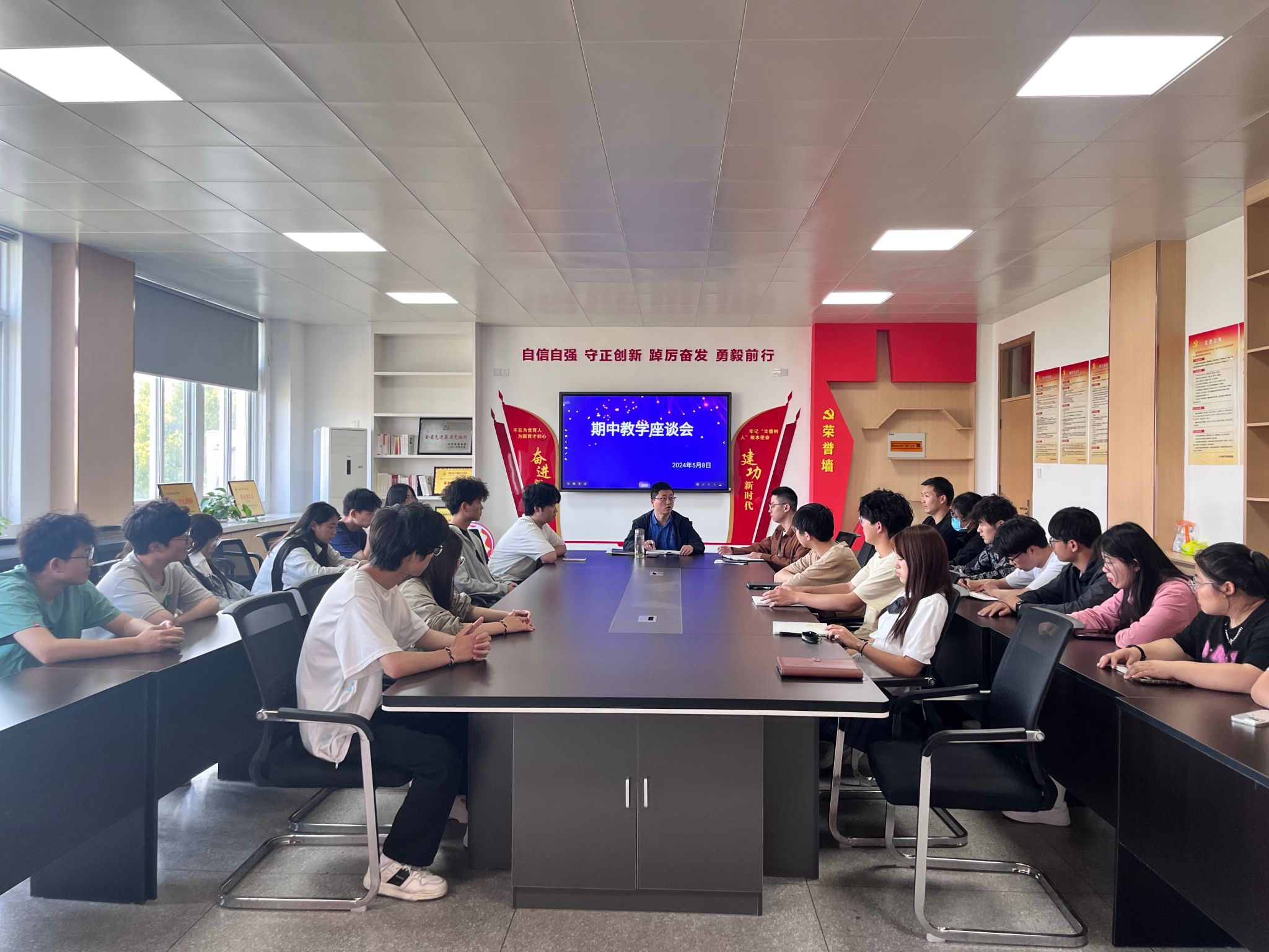 学生座谈会由教学秘书王磊主持,王磊认真听取了学生代表的发言并做了记录。