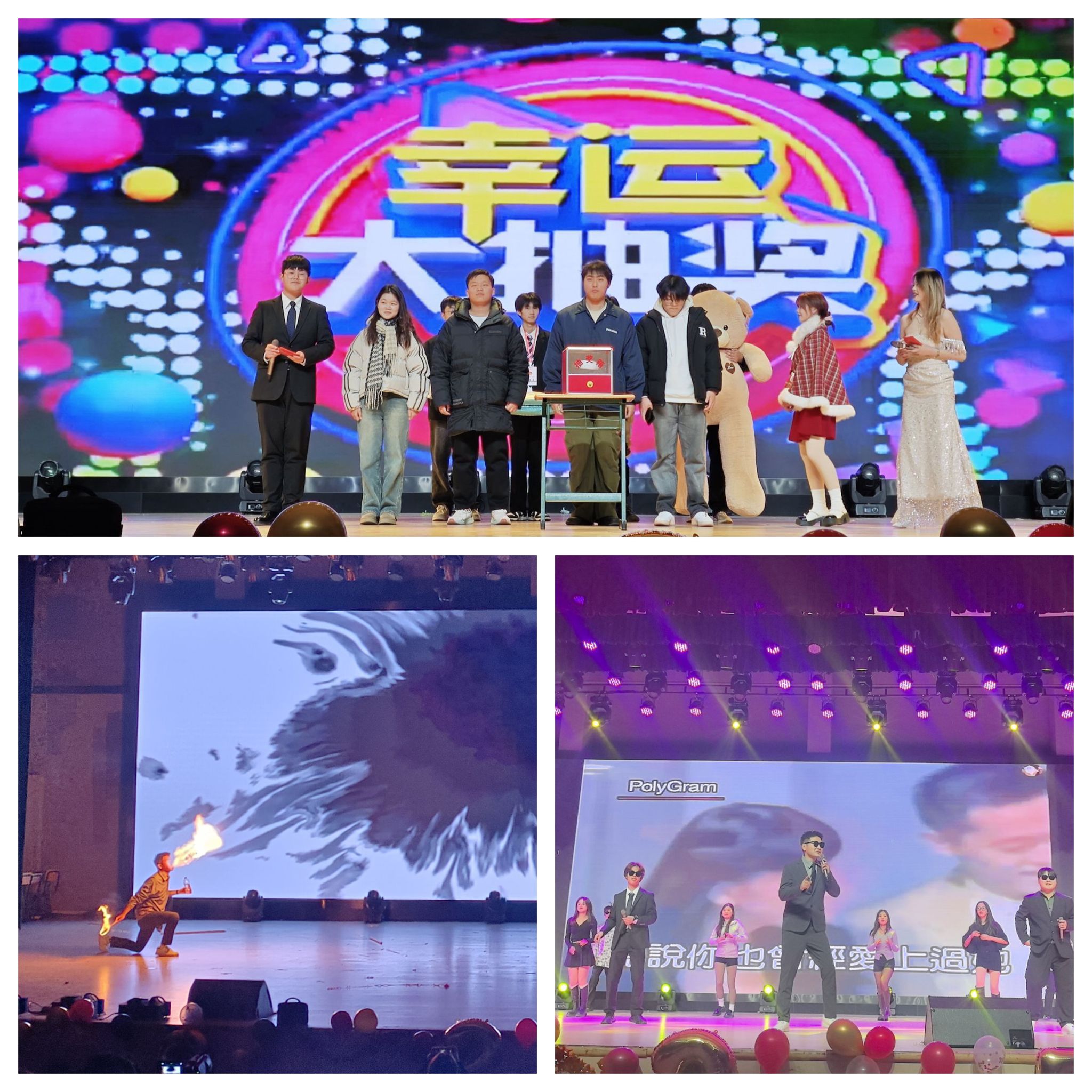 此次晚会节目形式多样,内容丰富多彩,精选出12个涵盖了歌曲、舞蹈、小品、朗诵等多种艺术形式的优秀节目,充分展现了食环学院学子们多才多艺的青春风采。此次晚会还穿插了抽奖环节,入场票据上的副卷作为抽奖依据被学生代表随机抽取,不仅丰富了晚会内容,更大大增加了同学的参与感。