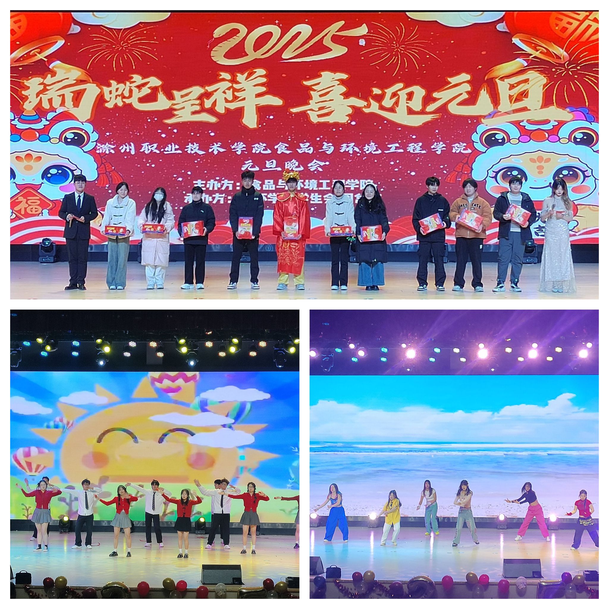 欢声笑语辞旧岁,载歌载舞迎新年。1月2日,食品与环境工程学院元旦晚会在校大礼堂如约举行,出席此次晚会的特邀嘉宾有食环学院院长梁建军、党总支书记张功会、团总支书记施明远以及教师辅导员代表。全院师生欢聚一堂共同庆祝新年的到来,为校园增添了浓郁的节日氛围,为新年奏响了快乐的序曲。