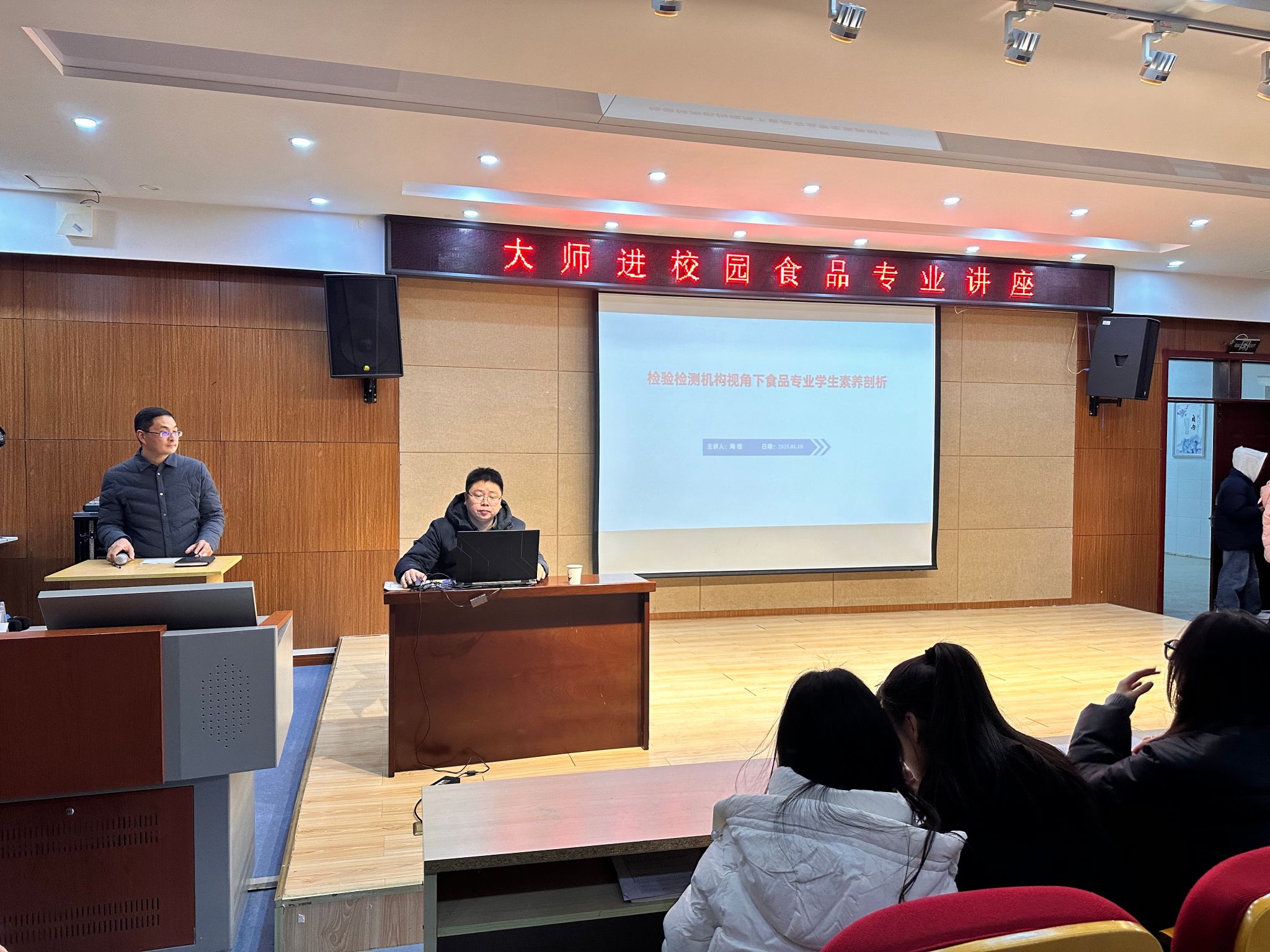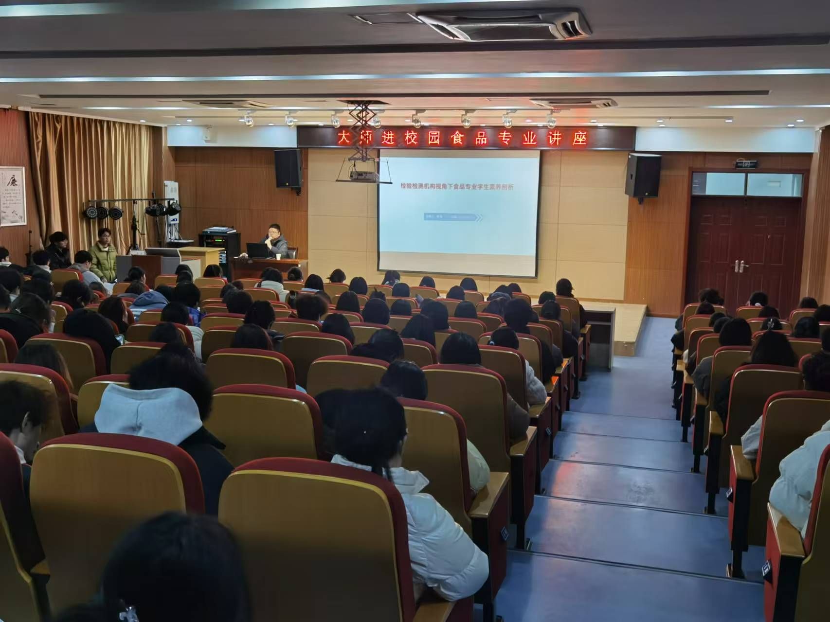 为进一步加强校校专业交流,推进食品类专业人才培养质量稳步提升,拓宽产教融合渠道,长三角健康食品行业产教融合共同体于1月10日在南阶203教室举行专题讲座,由共同体副理事长单位江苏农林职业技术学院检验检测技术中心负责人陶程副教授担任主讲,食品与环境工程学院副院长、共同体副秘书长孟飞主持,来自食品与环境工程学院食品类专业的师生200余人参加。