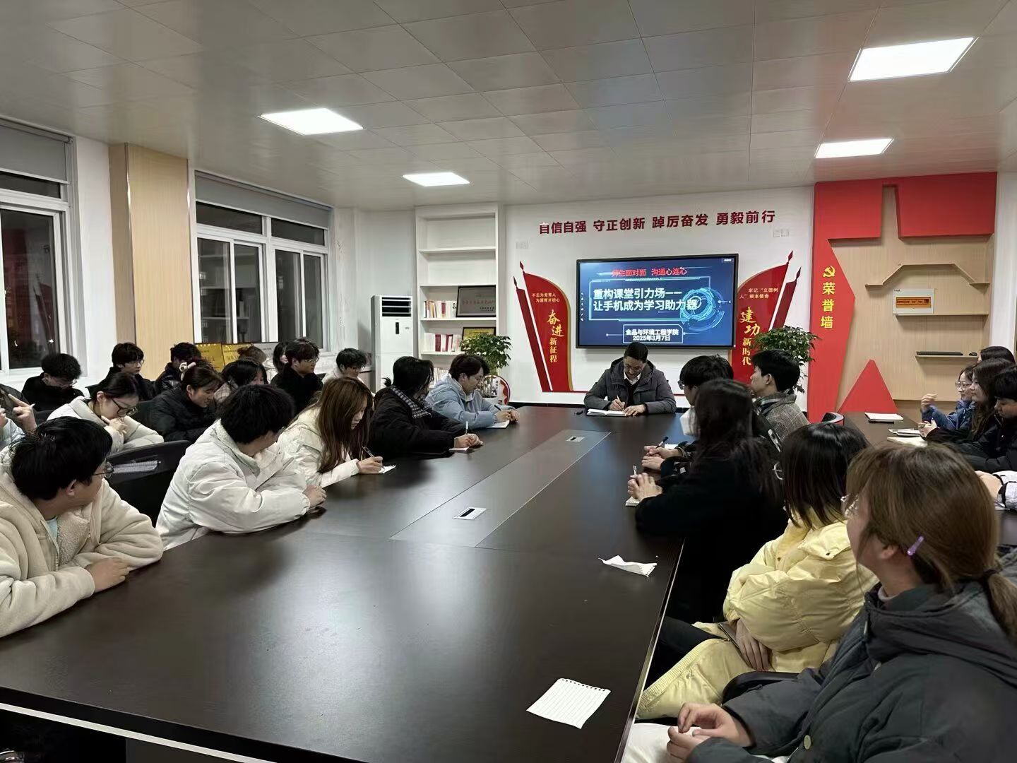 3月7日晚,食品与环境工程学院在2317会议室召开了一场气氛热烈的师生座谈会。此次座谈会由学院副院长孟飞主持,聚焦“重构课堂引力场——让手机成为学习助力器”这一主题,23、24级各班级学生代表积极参与,共同为解决学生手机使用问题出谋划策。