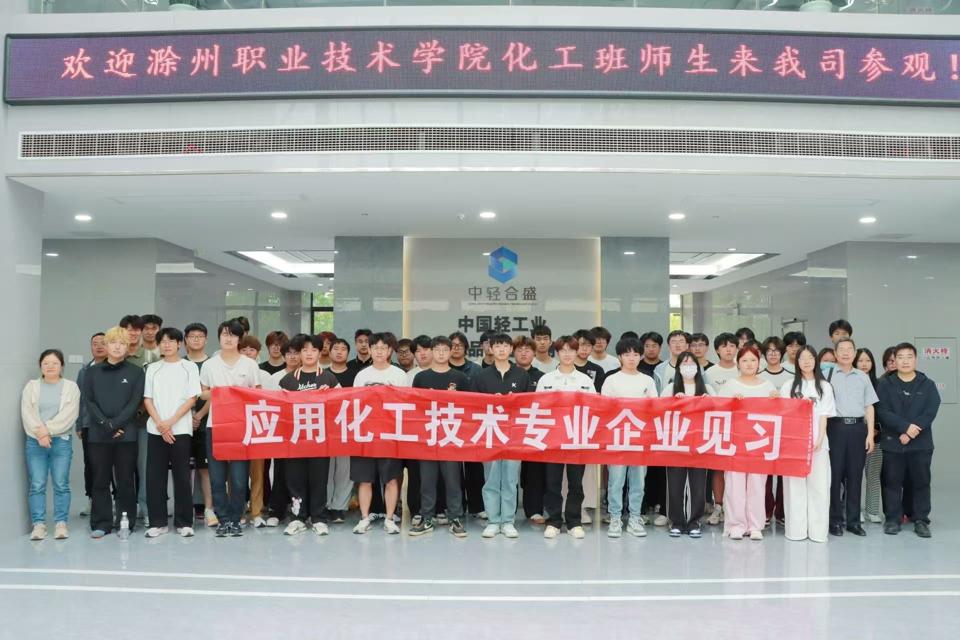 为深化产教融合,助力学生了解行业前沿技术,5月26日下午,食品与环境工程学院应用化工系4名专业教师带领2023级应用化工技术专业学生赴滁州市两家高新技术企业——中轻合盛科技有限公司与通用生物(安徽)股份有限公司开展生产认知实习活动。此次活动旨在通过实地参观、技术讲解与互动交流,拓宽学生视野,增强职业认知。