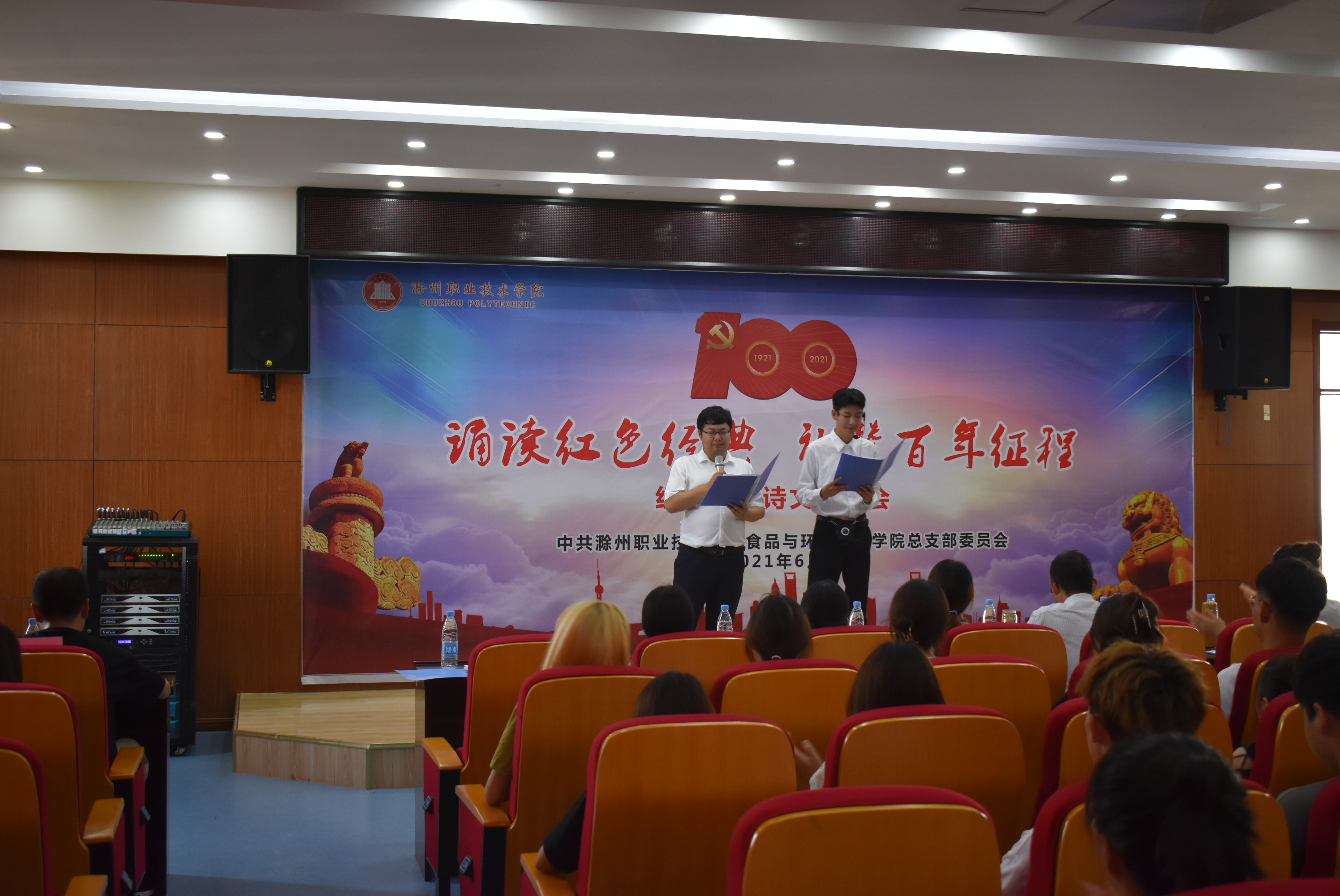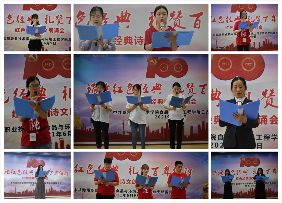 为热烈庆祝中国共产党成立100周年,传承红色文化,汲取奋进力量,食环学院师生以诗文朗诵的方式,学习党的历史,讴歌党的丰功伟业,礼赞党的百年征程。