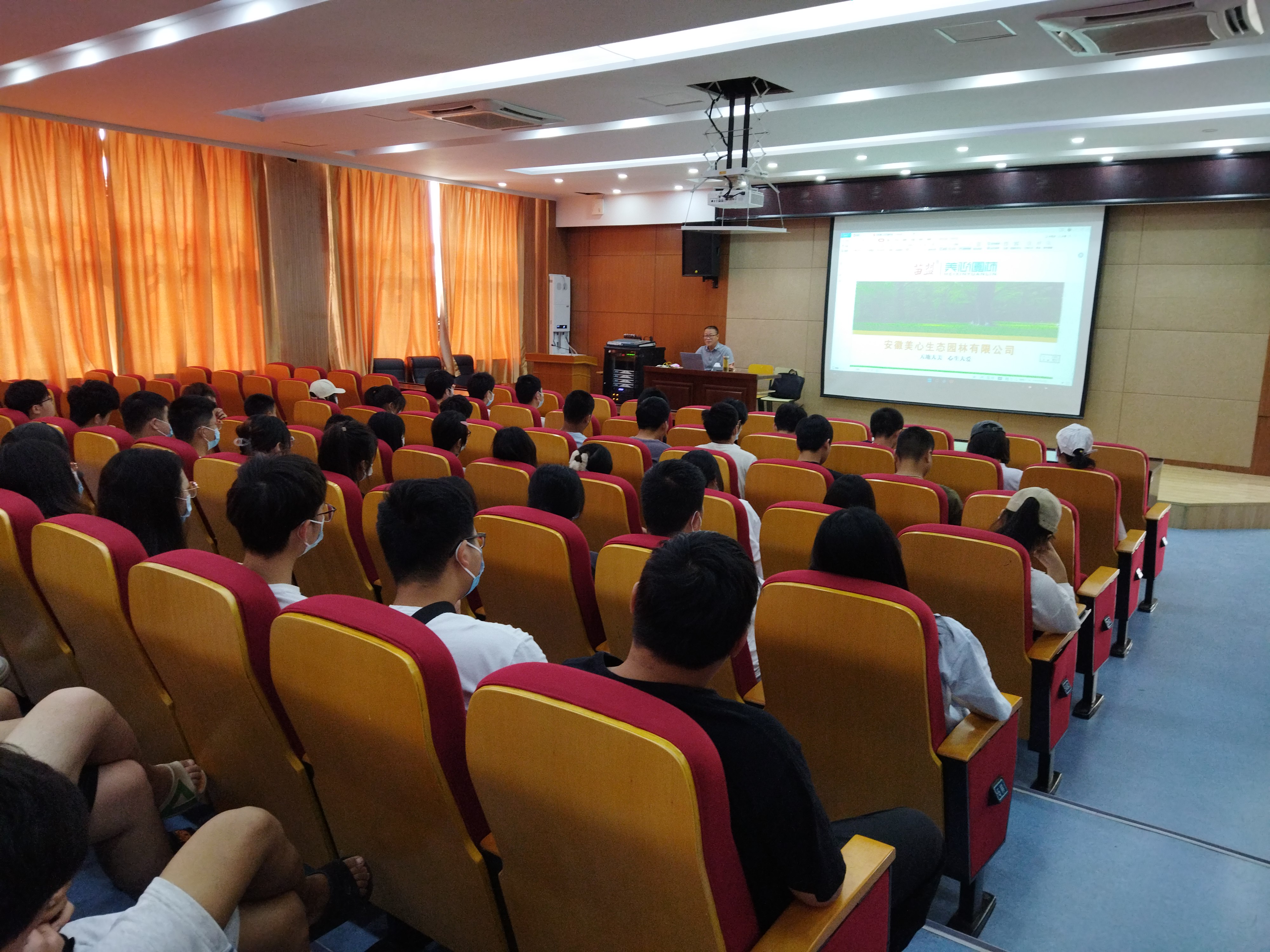 5月27日上午,安徽美心生态园林有限公司总经理徐之田应邀到awc官网食品与环境工程学院做学术报告,2020级园林技术专业学生以及园林系部分专业教师近200人共同聆听。报告会由梁建军院长主持。