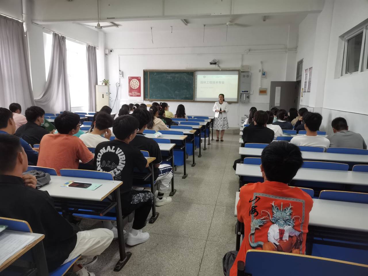 园林园艺系姜自红副教授、涂清芳副教授分别从专业历程、专业学习内容、专业所取得的荣誉及专业前景等方面进行讲解与阐述,勉励学生积极参加技能大赛及专升本。