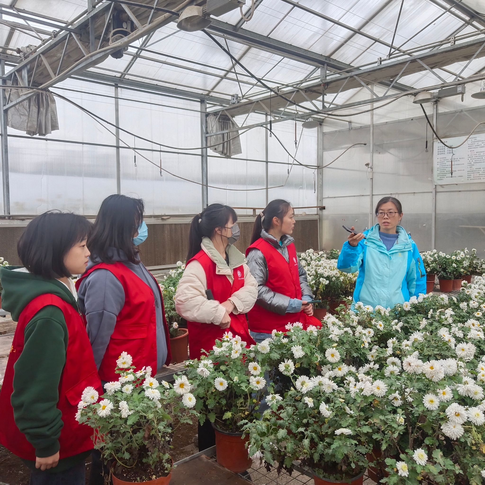 活动开始前,涂清芳带领着志愿者们到达实训大棚,并且用通俗易懂语言向同学们详细讲解菊花的生长习性、品种、价值、栽培技术等。她指出菊花在生长过程中对水分的需求比较大,所以在养护菊花时也需要为植株提供适当的水分,让菊花健康的生长。同学们听得十分认真,瞬间对菊花感兴趣起来。