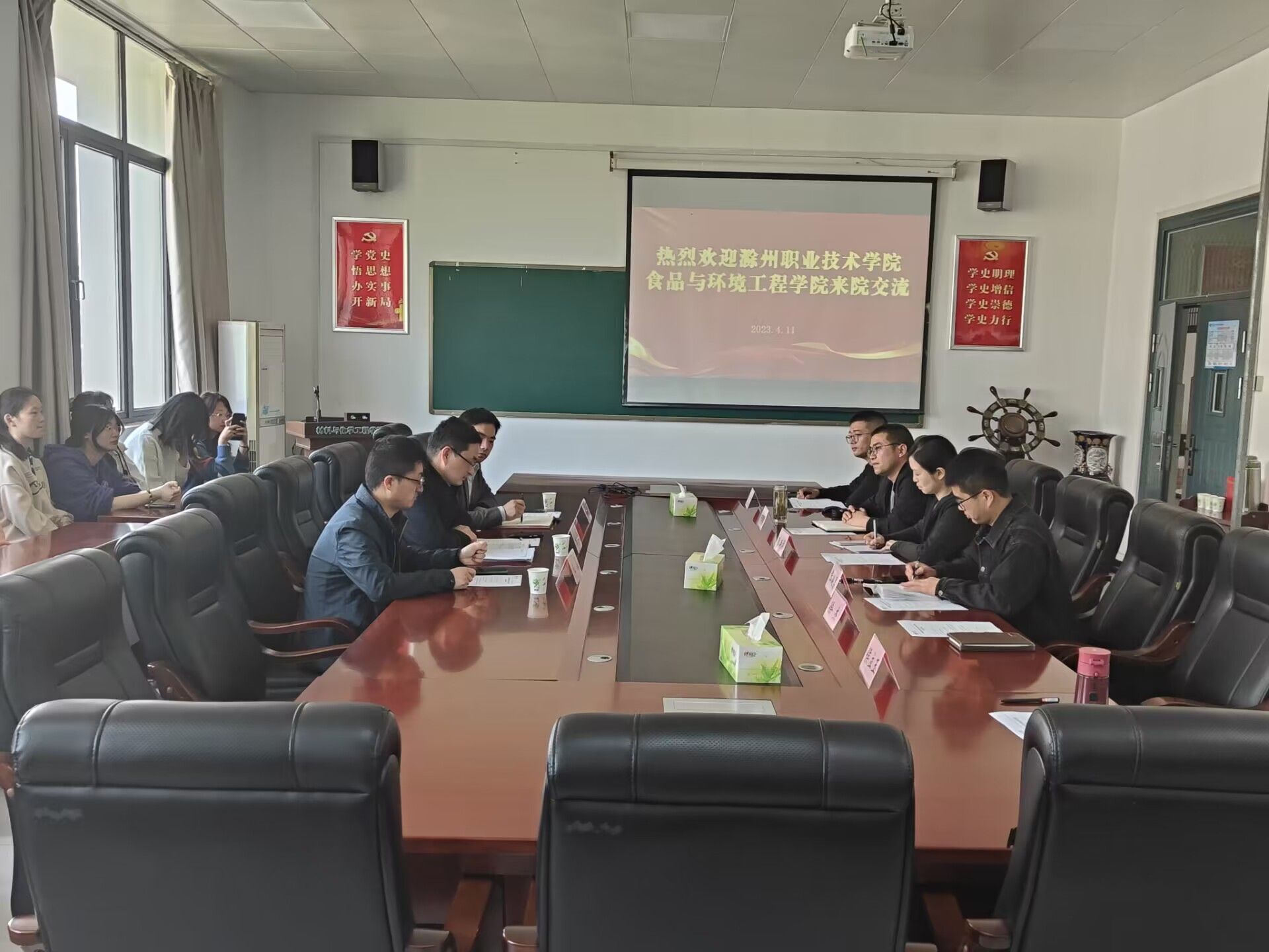为进一步加强校际合作,推动应用化工技术专业建设,拓宽学生的知识面和视野,4月11日上午,招生就业处副处长兼22级应用化工技术班徐云龙、食品与环境工程学院副院长孟飞、教学秘书王磊及22级应用化工技术36名同学赴滁州学院材料与化学工程学院交流学习。滁州学院材料与化工学院副院长王余杰,党委副书记、纪委书记朱咸影给予热情接待。