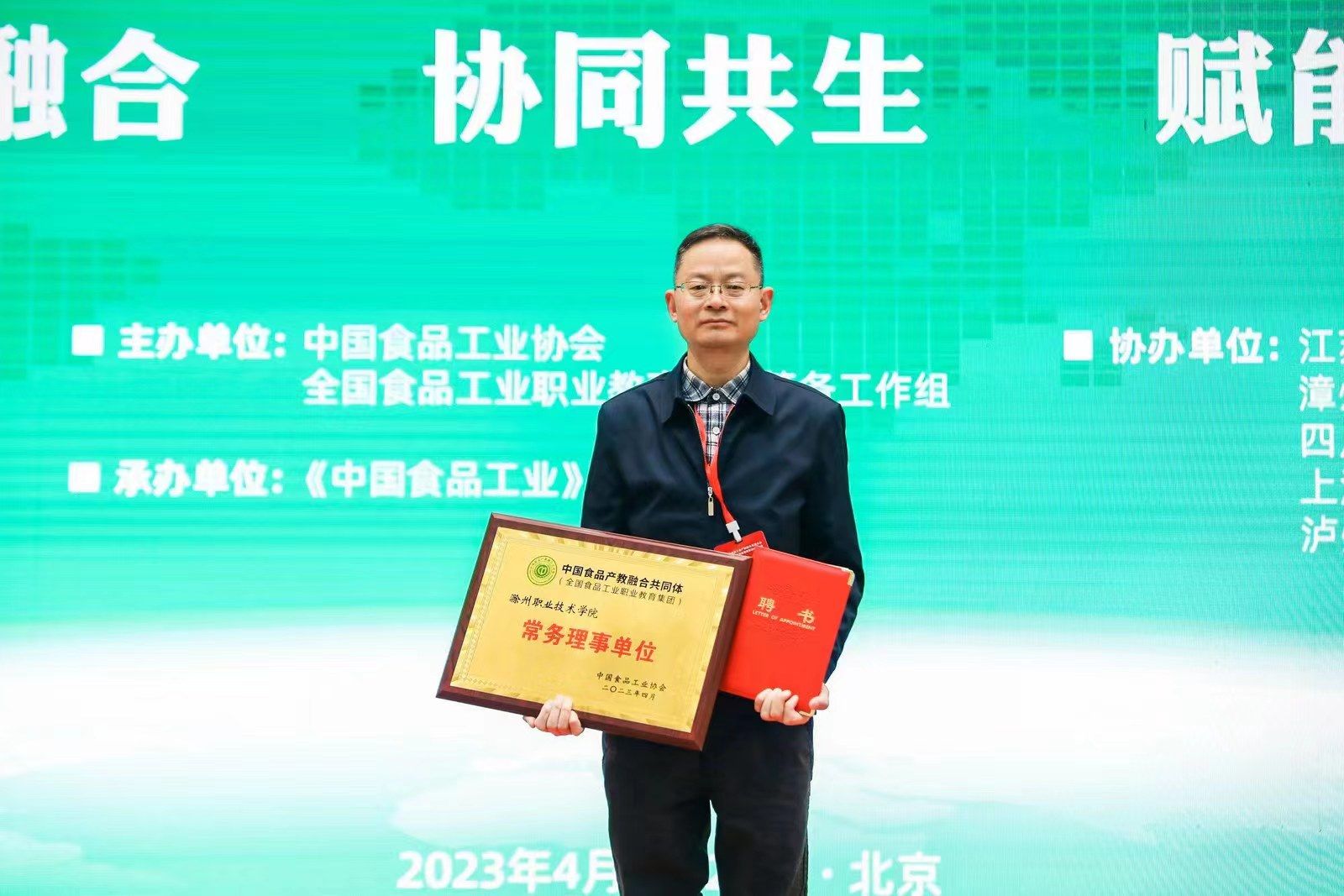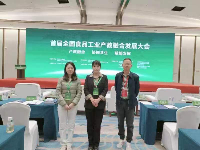 4月21号-24号,首届全国食品工业产教融合发展大会暨全国食品工业职业教育集团成立大会在北京隆重召开。十二届全国政协副主席马培华到会致辞。食环学院党总支书记陈震、院长梁建军,食品系主任陈静和专业教师谢小花参加此次会议。