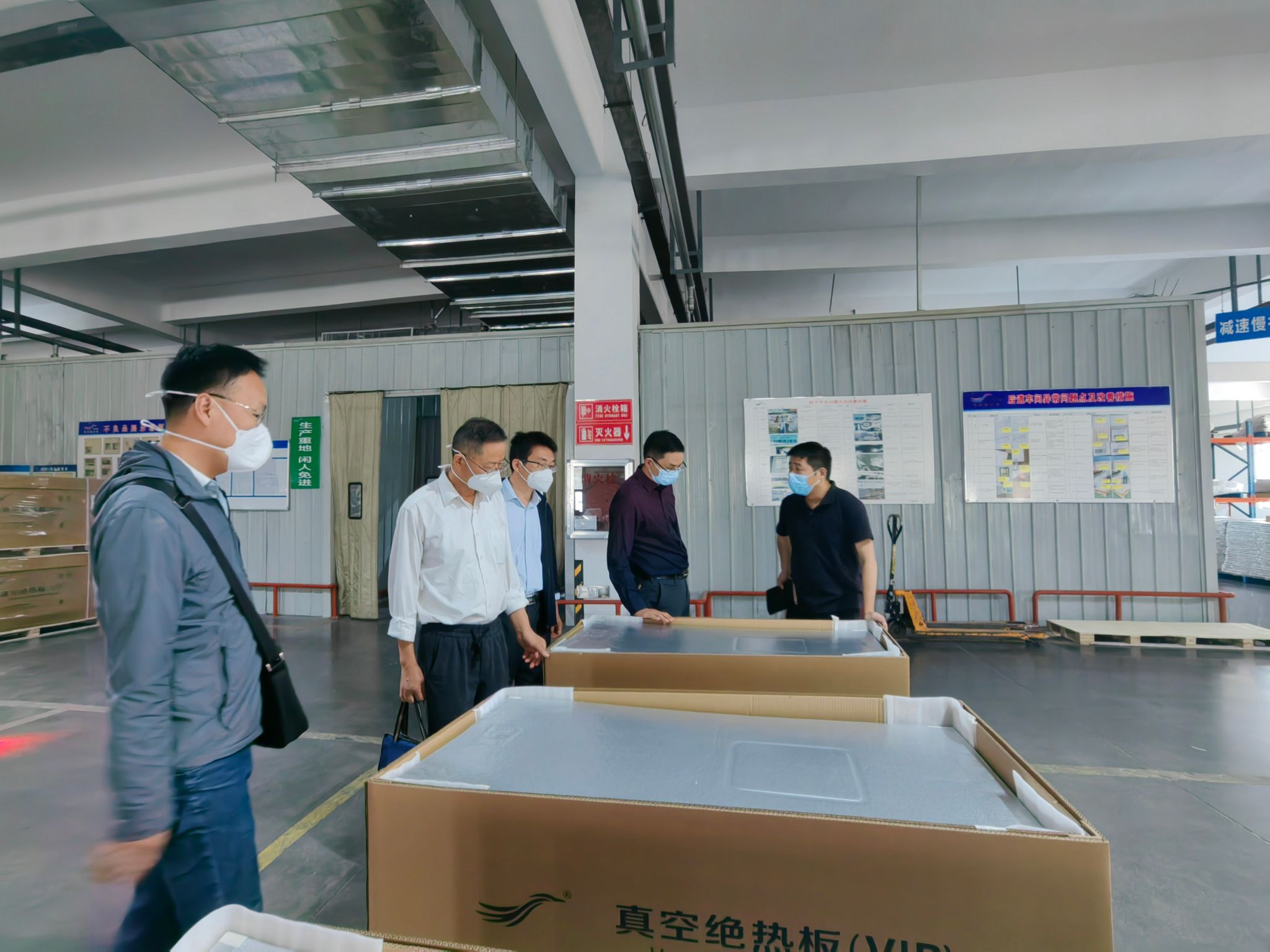 李顺忠首先向梁建军一行汇报了企业概况:公司VIP项目具有优异保温性能,优于传统保温材料十余倍,先后获得发明专利12项,实用新型专利45项。该公司是VIP国家标准的主要编制单位,是国家高新技术企业、专精特新小巨人企业、省出口创汇100强民营企业。公司VIP产品先后获得美国GE、欧洲Electrolux和韩国三星、LG等世界500强市场青睐的同时,紧扣双碳减排、转型升级的国家战略,紧盯巨大的建筑市场,近年来取得突破性进展,使建筑VIP先后在北京、山东、合肥等地政府公共建筑和商住建筑上广泛应用,市场前景广阔。交流过程中,梁建军一行就该产品的技术来源、技术的先进性、独特性、标志性技术成果、产品的成本核算、应用推广的前景等进行了深入广泛的探讨。