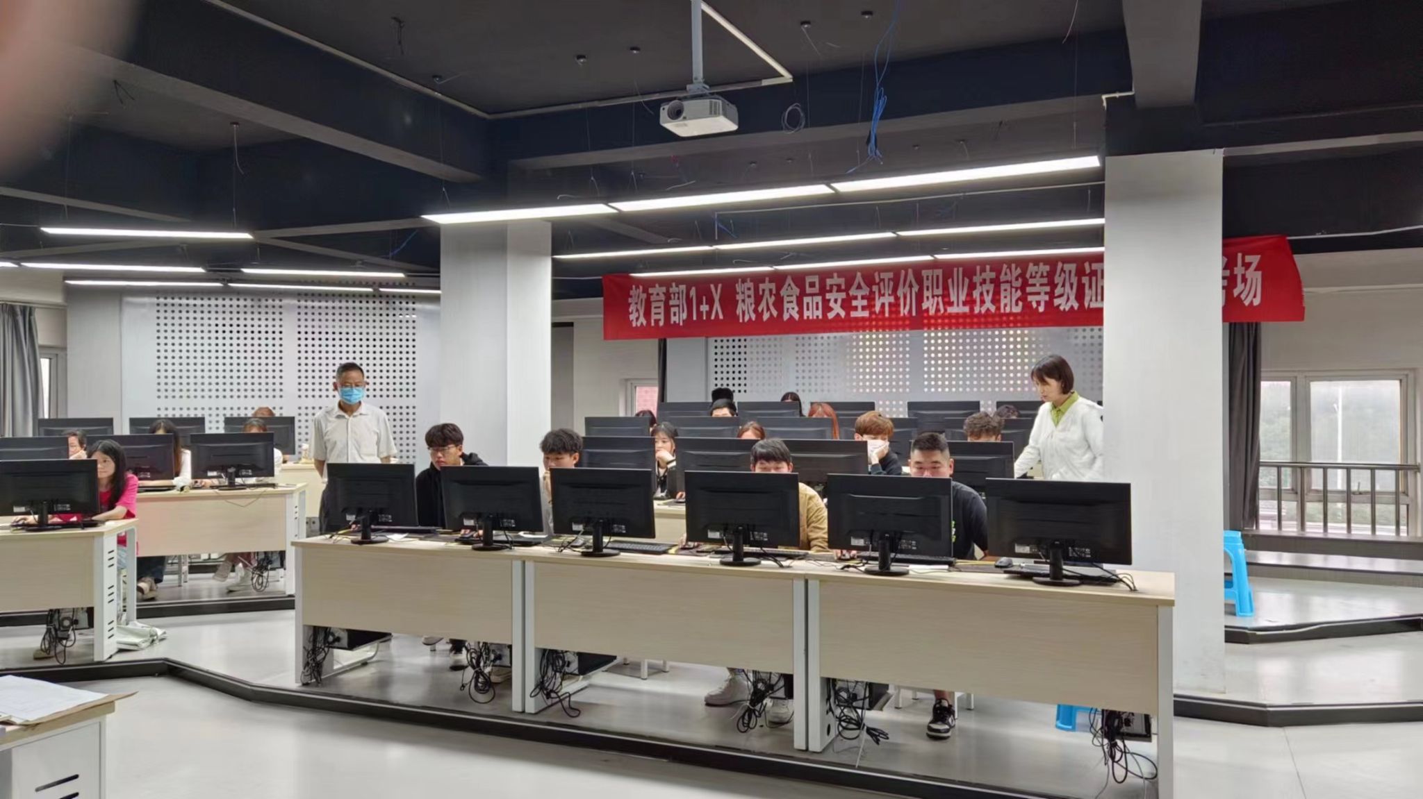 此次考试分为理论考试、虚拟仿真软件操作及实操考试三个模块,理论考试及虚拟仿真软件操作在学校机房进行,实操考试在食环学院实验室内进行。学生通过前期的培训与训练,都能够熟练地完成考核项目。