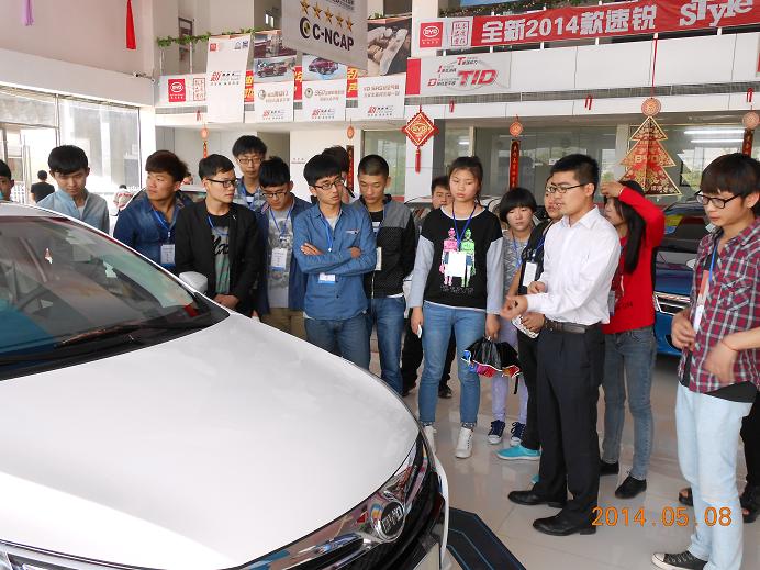 2014年5月8日和9日,汽车工程系13汽营(1)班的同学在张信群教授和杨靖老师的带领下,分别走进福特4S店和比亚迪4S店,开展校外见习活动。校外见习是13级汽车服务与营销专业人才培养方案新增加的教学环节,旨在使学生了解4S店的运营模式,增强学生有关汽车销售方面的能力,同时丰富其汽车文化知识。