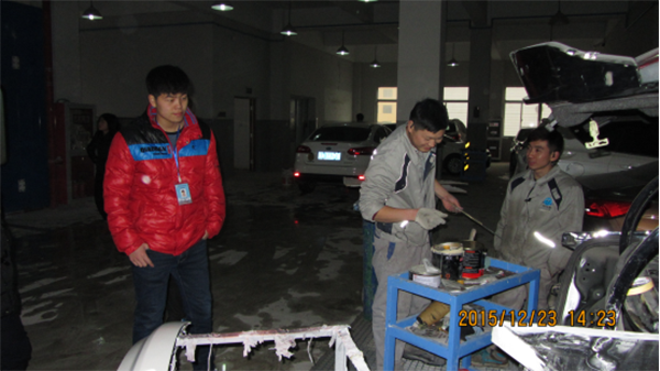 随后学生们还参观了喷涂、美容车间,看到我院学生对汽修的热情,长安福特4S负责人表示目前汽车后市场人才紧缺,需要更多后备力量来扩充,尤其是我院培养出来的学生,理论与操作能力兼备,动手能力强,有责任心,他还表示欢迎更多我院学生前来长安福特4S店实习、工作。一席话听得在场学生更加热血沸腾。