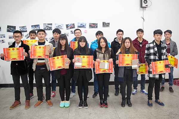 此次比赛中决出一等奖一名,二等奖一名,三等奖两名,优秀奖和网络热门奖若干。活动最后由汽车系记者团团长吴立欣为他们颁发奖品接着选手合影留念。