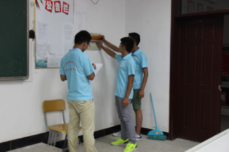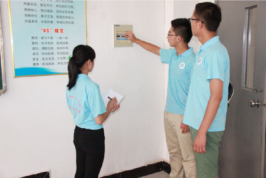 为加强汽车系教室楼管理,消除安全隐患,2015年7月4日下午汽车工程系学生会的学干们深入5号楼教室,对教学楼设施安全和卫生等方面进行了排查。