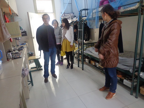 为了深入贯彻党的群众路线教育实践活动,落实“校园文化建设推进年”活动实施方案,推进我系宿舍6S文化建设,继续加强学生宿舍6S管理工作,在党总支书记苏有良的领导安排下,3月26日下午汽车系全体辅导员深入9号楼男生宿舍进行突击检查。