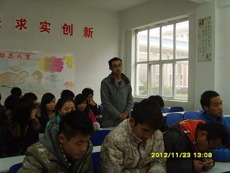2012年11月23日13:00,由院团委组织的学干团干汽车座谈会在5111教室顺利召开。参会的有院团委王蓓蓓书记、朱婷婷老师和近20名的团干学干。