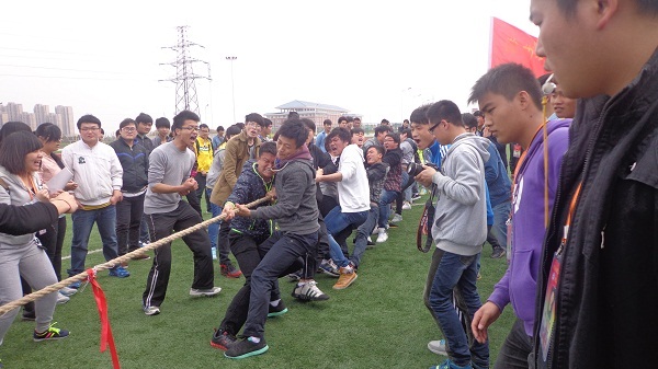 仪式启动后开始了精彩的拔河比赛,此次比赛意在强化同学们良好的身体素质,促进身心健康。比赛以系为单位,采取男女混合,三局两胜制规则进行,每组优胜队晋级下一轮。汽车系在首战中,力敌土木系,赢得了胜利。在接下来的比赛中,汽车系同学对战传媒工程系,斗志昂扬,一鼓作气,再次取得胜利。最后一轮汽车系同学们迎来了终极挑战,与食品与环境系PK,队员们都整齐往后倒,向后拉,团结协作,拼搏进取,最终汽车系获得第二名的佳绩。