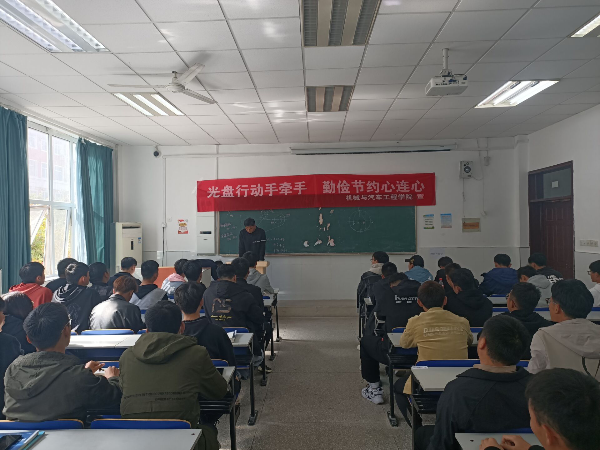 为大力提倡文明用餐的良好风气,培养同学们的节约意识,11月4日中午12时,机械与汽车工程学院团总支在5113教室开展以“光盘行动手牵手,勤俭节约心连心”为主题的活动,干事们积极参加。