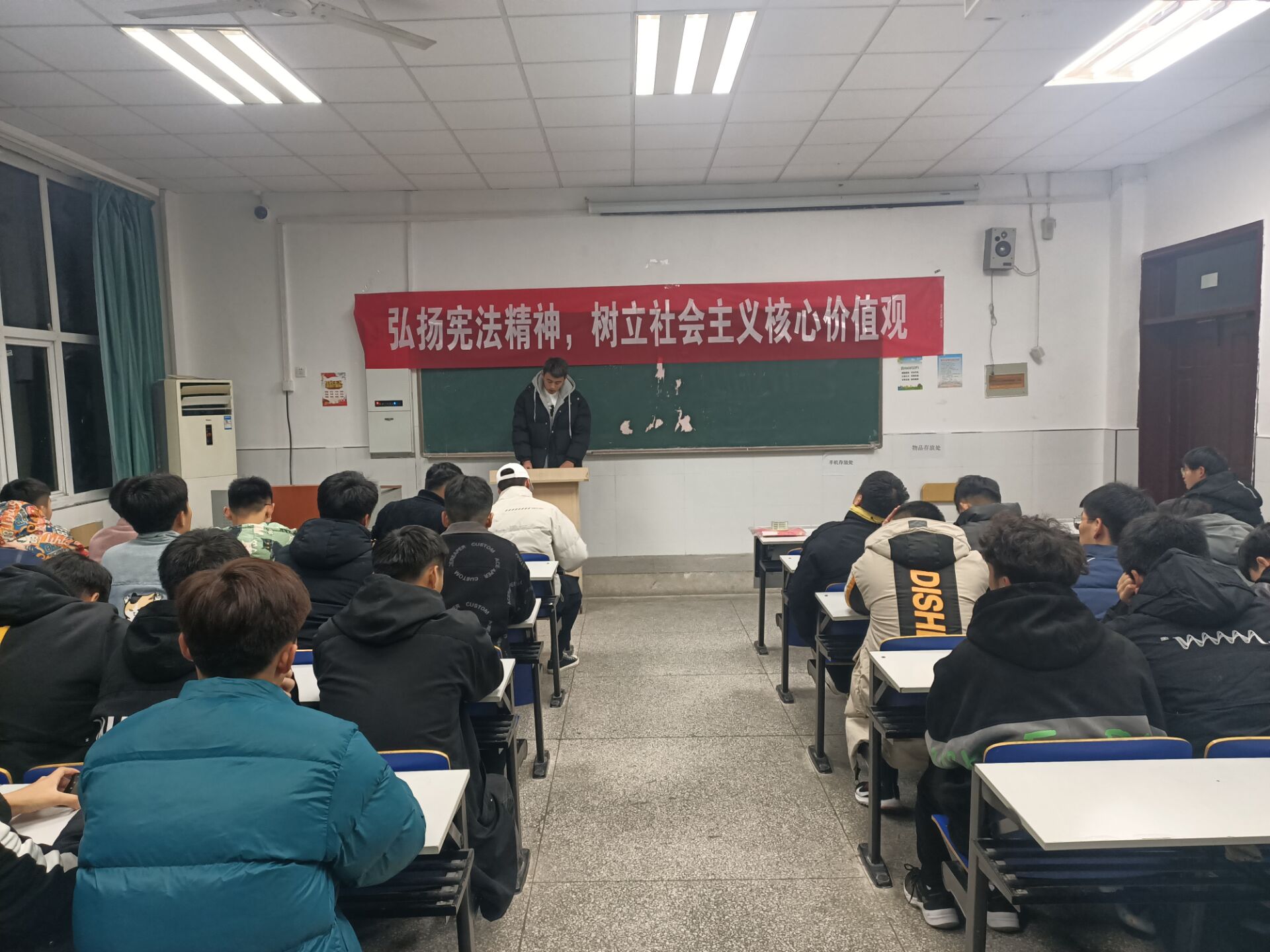 2020年12月4日晚6点,机械与汽车工程学院团总支,在5113教室开展“弘扬宪法精神,树立社会主义核心价值观”主题活动,各部门紧密配合,同学们积极参加。