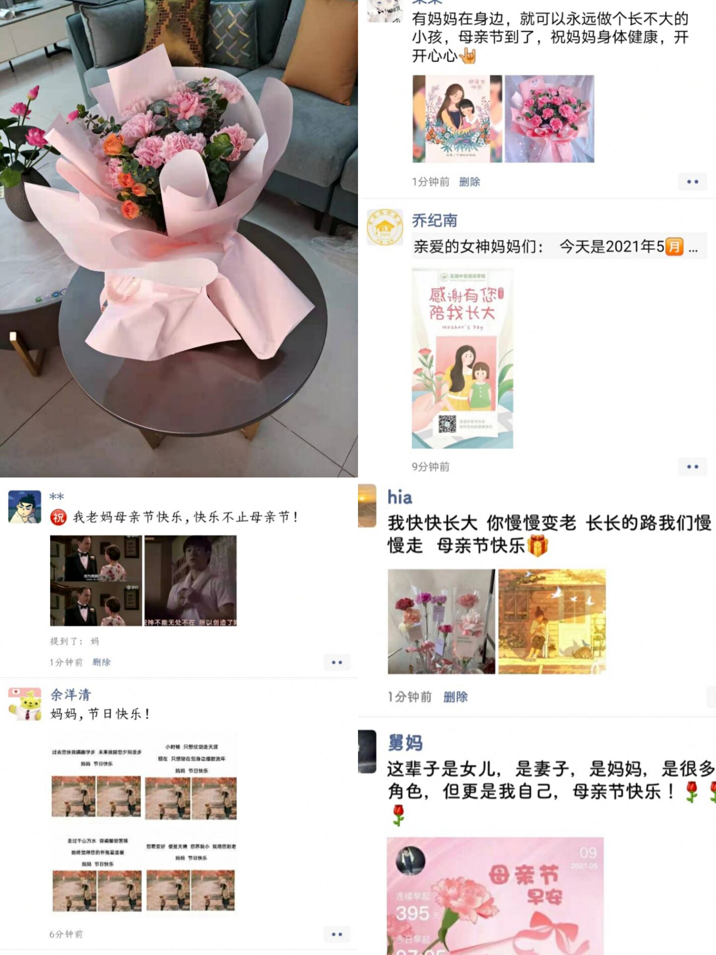 活动期间,全体学生干事的母亲纷纷收到自己孩子感恩的祝福,一部分学生干事以发布微信朋友圈的方式向母亲表达自己发自内心的感恩祝福;一部分学生干事在明信片中写下“祝母亲永远开心,幸福爆棚”这样的美好祝福,其中,新媒体宣传部的张滨川同学,通过外卖送花的方式,为自己的母亲送上感恩康乃馨花束和祝福。