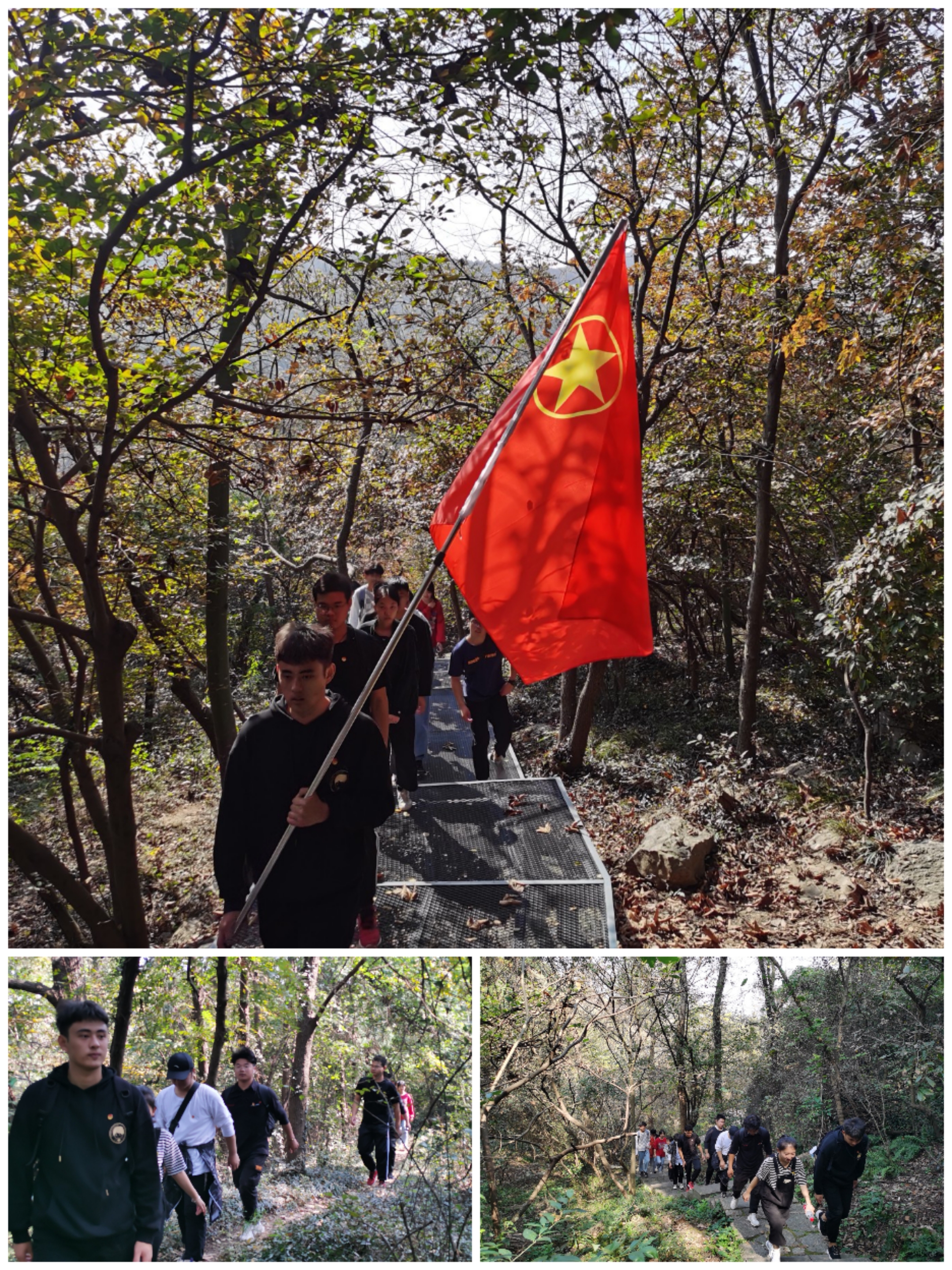 团员青年们从山脚迈着坚定的步伐向琅琊山顶南天门位置前行,登山活动既是对身体素质的考验也是对精神意志的磨砺。攀登过程中,团总支始终高举团旗,引领方向,鼓舞人心,大家向着团旗所指,一路唱着团歌而行,朝着山顶进发,团员青年协作互助,梯山架壑。一路攀登中,他们信念坚定,精神昂扬,气氛活泼,步伐矫健,最终成功让团旗在山顶飘扬。