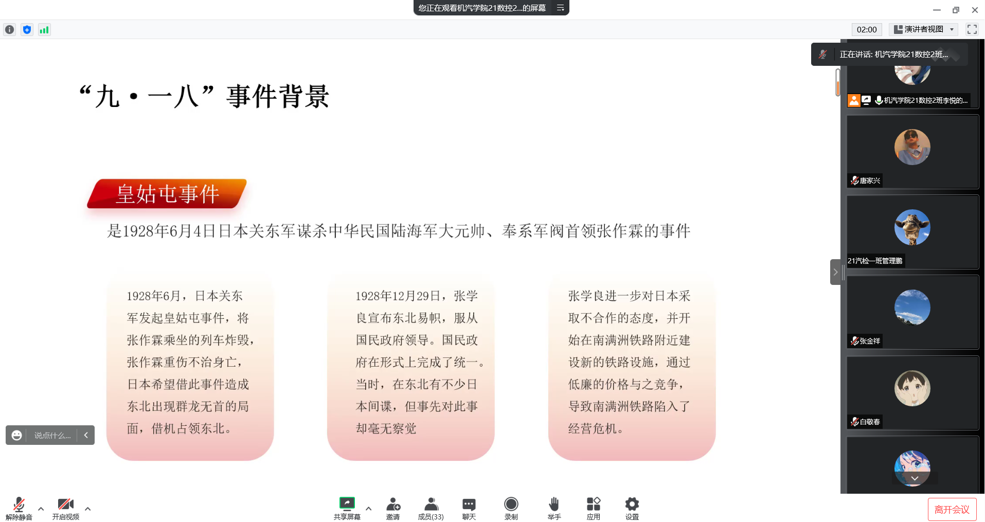 为引导青年学生铭记历史,增强爱国意识,机械与汽车工程学院团总支于9月18日开展爱国主义教育线上主题团课。