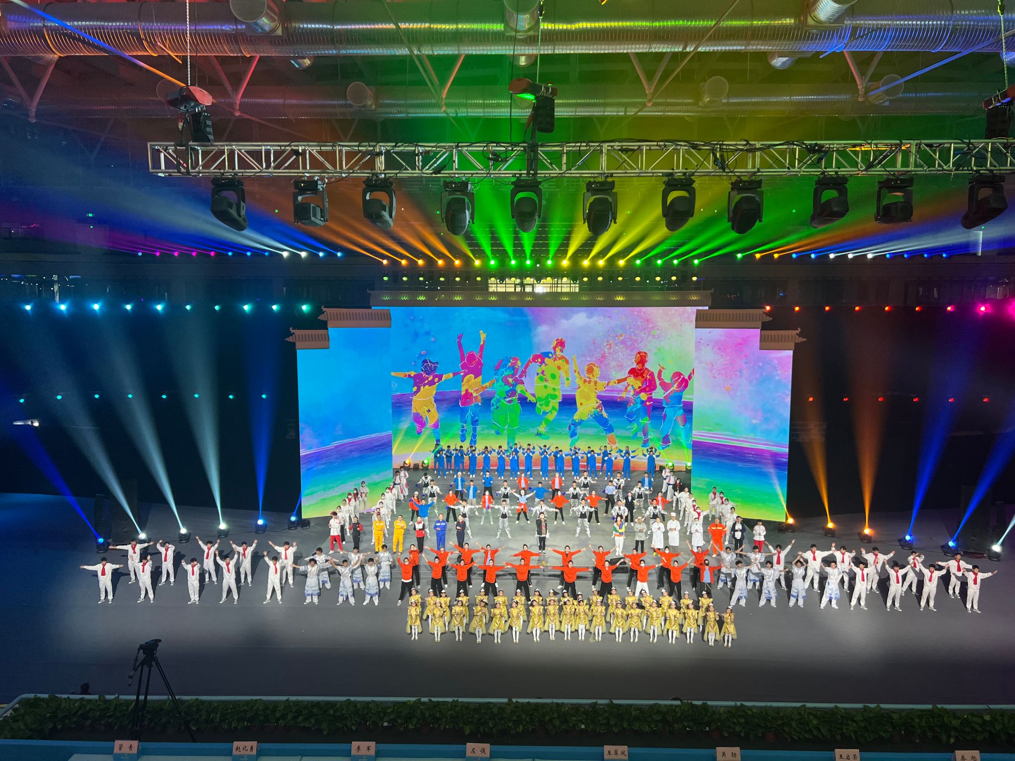 我院学子坚持团结协作、服务大局,以昂扬向上的精神、吃苦耐劳的品质,高质量、高水平地完成了此次活动任务,把最好的艺术水准呈现给全省观众,得到了主办方及现场观众们的一致好评。通过省十五运排练演出,同学们结交了新的伙伴,增加了生活体验。在历时一个多月的集中排练中,同学们以不怕苦、不喊累的志愿服务态度向大家展现出青春强壮之体魄、坚韧之毅力、无悔青春之奋斗。同学们的辛苦付出展现着青年担当,也为省十五运顺利演出贡献青春力量。