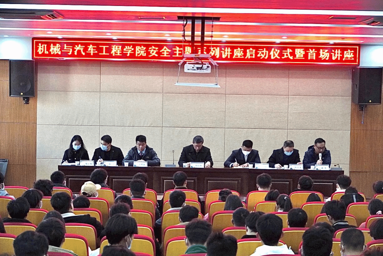 2月27日下午,机械与汽车工程学院“安全知识宣讲”系列讲座启动仪式暨首场讲座在南阶205举行。机械与汽车工程学院院长张信群、校党政办副主任、疫情防控办公室主任王厚红、安全保卫处副处长王煜康、学生工作处副处长顾宏才、校团委副书记甄帅、学院团总支书记倪子旭以及学生代表共计170余人参加。仪式由刘杰主持。