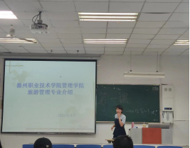 李老师首先对新生的到来表示热烈的欢迎,然后从对大学的介绍谈起,指出大学生活和高中的不同,并希望同学们在大学阶段开始树立“事业心”、尝试规划自己的人生;同时,也建议新生珍惜大学的同学之情,努力学习如何经营大学期间的人际关系,以此提升个人为人、处事的能力。接着,李老师还细致介绍了旅游管理专业的基本情况,从专业概况、课程设置、技能培养、竞赛考试以及就业方面等热点而实际的问题详细为同学们进行讲解,通过举例,告诉同学们“学些什么”“怎样学”“学完了有什么用”,并与同学们进行互动,引导同学们树立技能成才的目标,激发他们的学习热情。