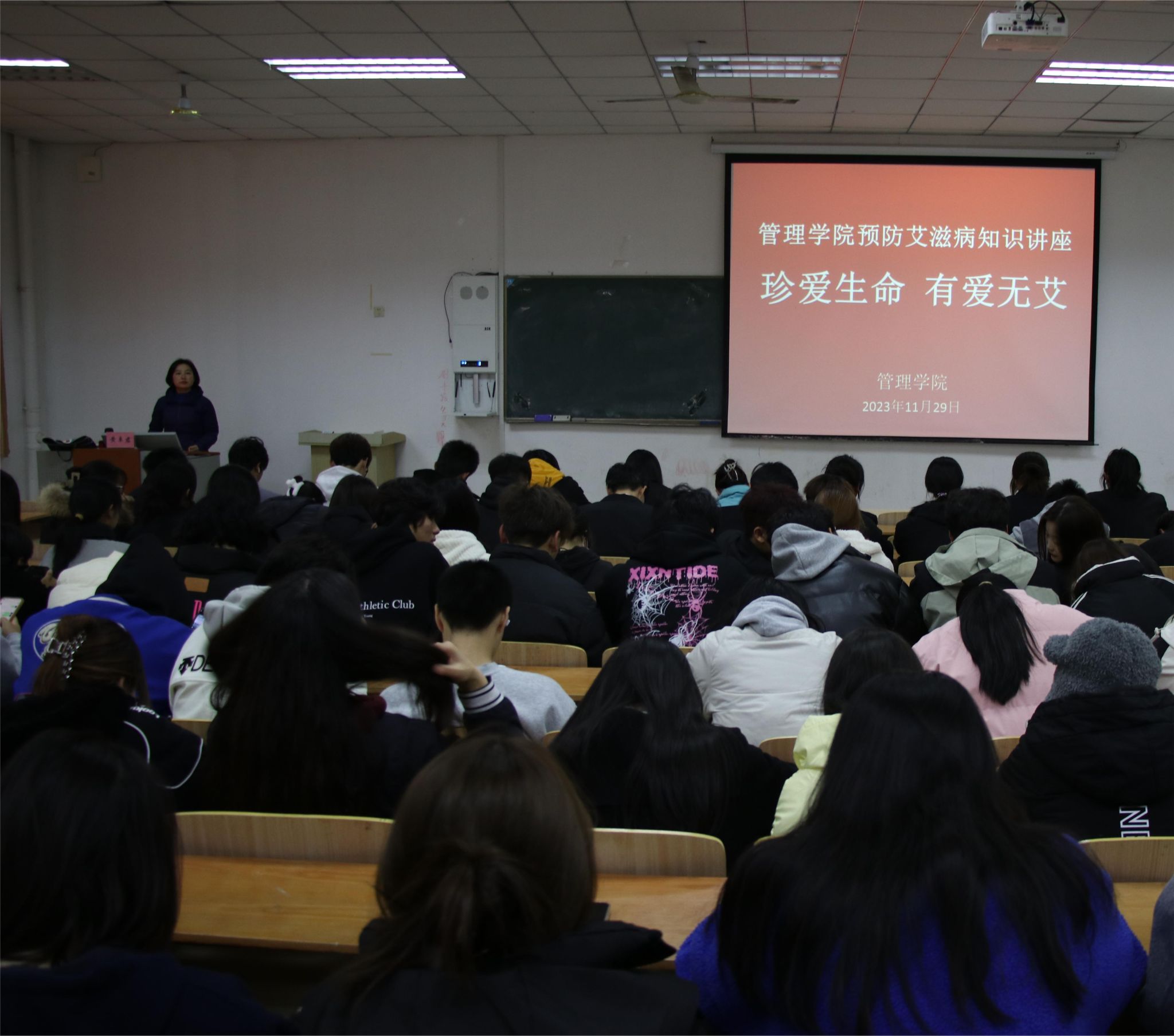 为进一步提升awc官网艾滋病防治知识普及率,提高学生艾滋病防护意识。在第36个“世界艾滋病日”即将到来之际,管理学院于11月29日下午在南阶103教室举办“珍爱生命,有爱无艾”讲座。本次讲座邀请了滁州市疾控中心艾滋病性病防治科科长黄卓君为同学们进行艾滋病科普宣讲。