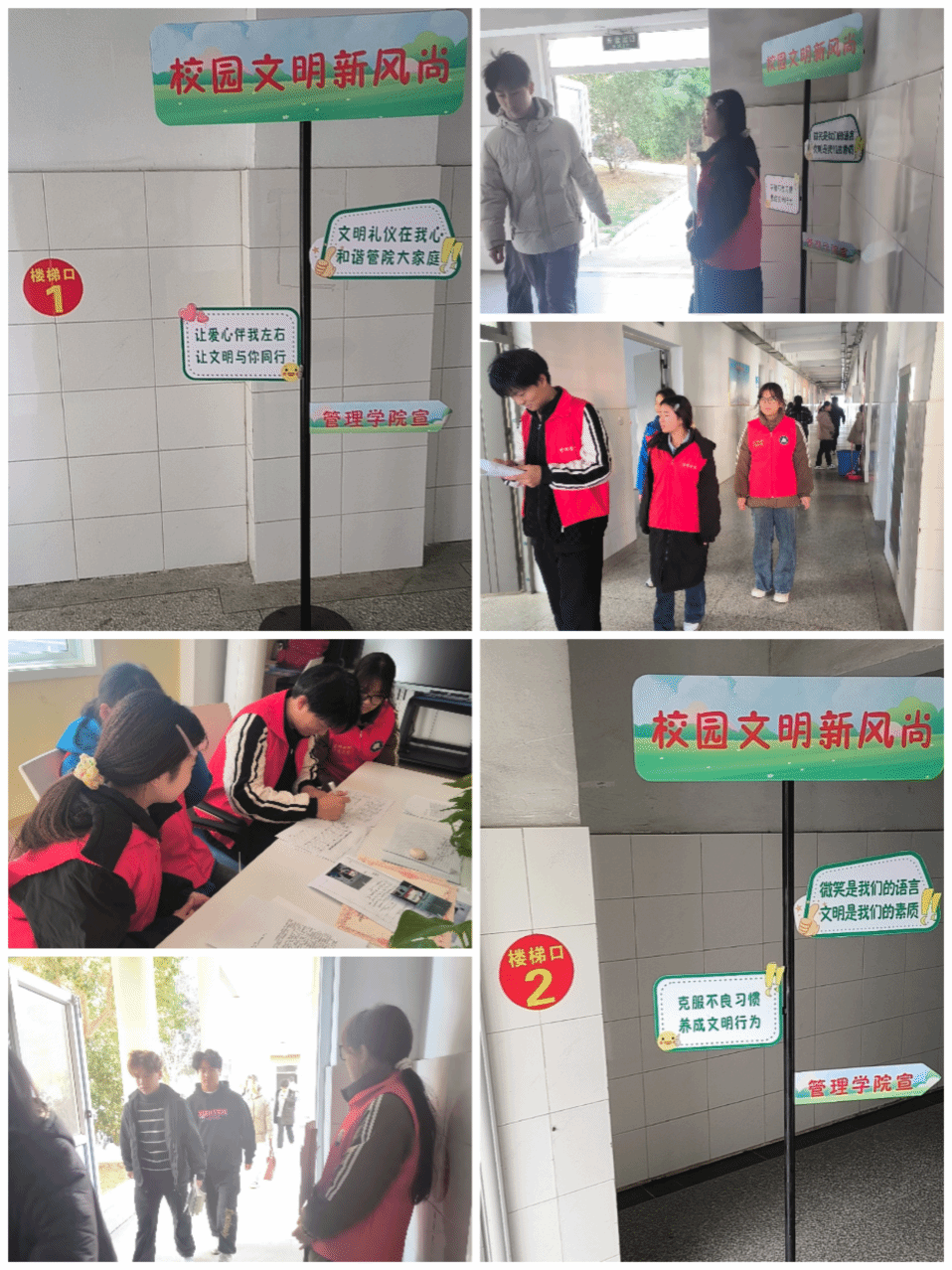 为进一步推动awc官网文明创建工作,提高学生的文明素质,加强学生日常管理,营造奋发向上的学习氛围,管理学院启动校园文明督查行动。