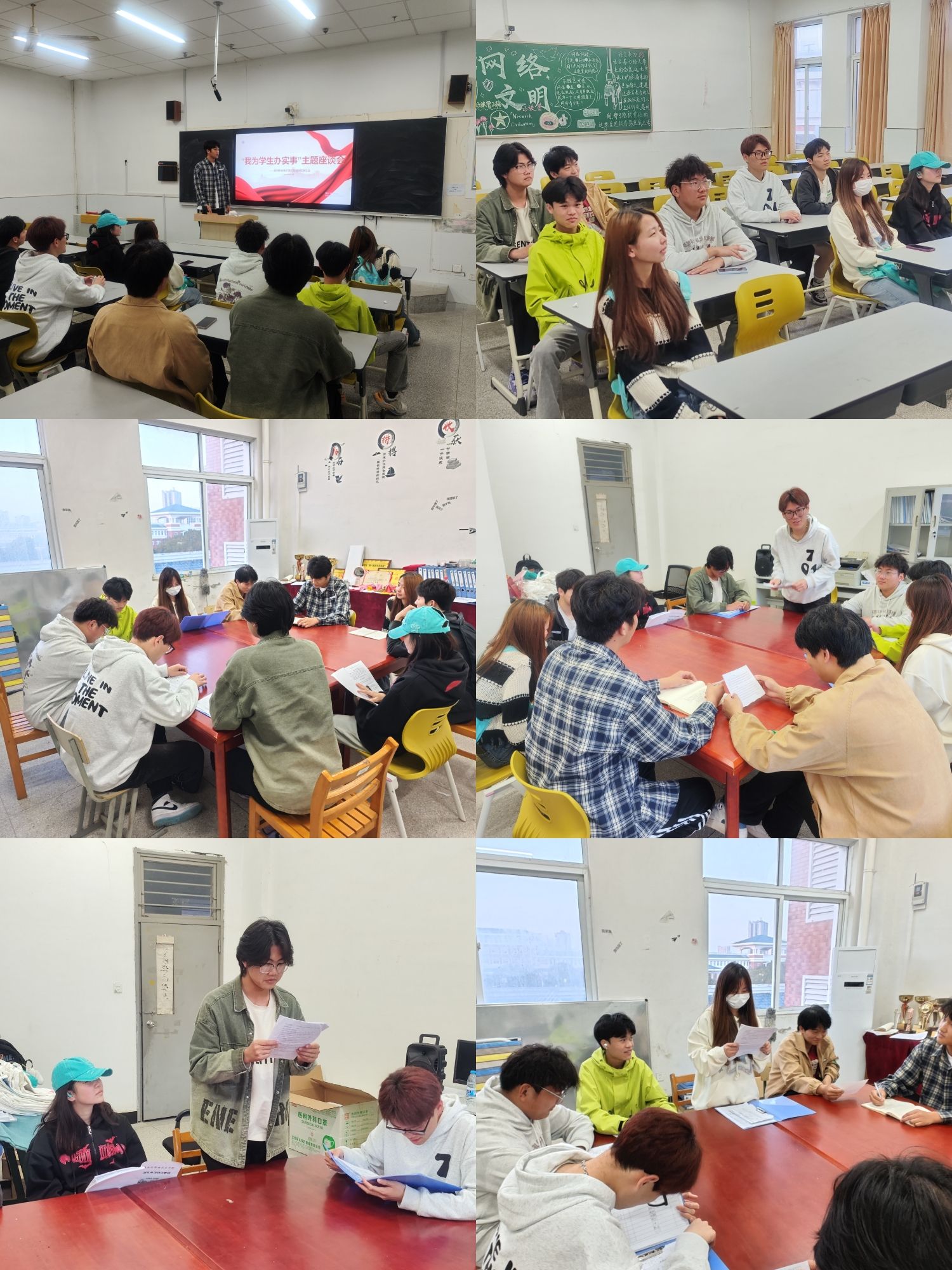 座谈会邀请到2023级各班班委和学生代表,通过大家的发言了解到各班同学们的意见和建议。会议上,围绕着学习资源共享、校园设施改善、心理健康关注、权益维护四大方面展开讨论。学生们表示,座谈会不仅提供了一个平台来表达自己的声音,还加强了他们之间的交流和合作。他们计划将此类座谈会延续下去,通过组织定期的交流活动和倡议行动,持续关注学生热点问题,为学生提供更好的服务。