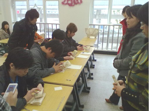12月1日下午,经贸系金融专业的“点钞大赛”在1220教室举行。