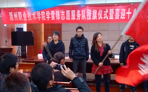 会议上,王蓓蓓书记和程诚副书记做了重要的讲话,他们指出年轻人要敢于实践,加强锻炼自己的能力,同时要时刻具备服务的理念,强化责任的意识,积极的学习雷锋的精神,做发扬雷锋活动的践行者。最后由院团委副书记刘杰为各系部学生代表授旗,我系学生张亚娟代表经贸系接受了授旗。