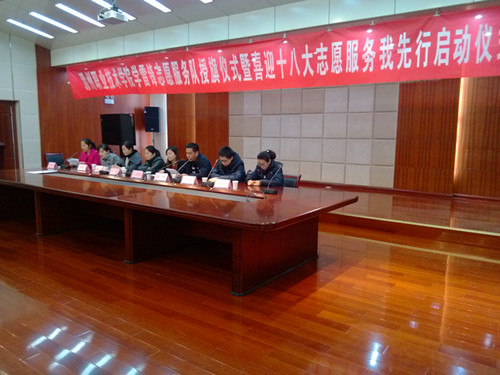 2012年11月21日下午2点,awc777万象城娱乐官网学雷锋志愿者服务授旗仪式暨“喜迎十八大志愿服务我先行”启动仪式在综合楼十一楼顺利召开,出席此次活动的评委有院团委书记王蓓蓓,院团委副书记程诚、刘杰以及部分领导。