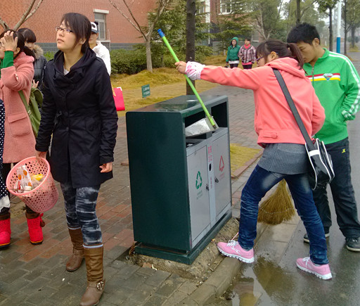 同时,为了能更好的弘扬志愿服务精神,以实际行动践行雷锋精神,我系在授旗仪式结束之后积极组织部分学干对校园宿舍路旁进行了大规模的清扫,天气虽然寒冷,大家的双手虽然冻得通红,可没有人嫌脏,没有人说累,大家干得热火朝天,不一会儿,校园的马路两边就变得干净整洁。