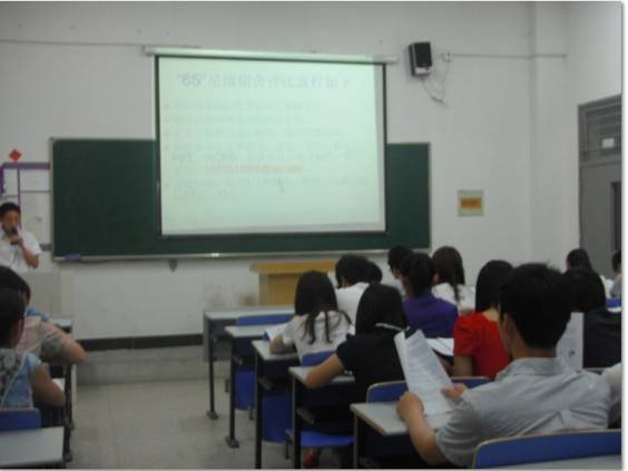 为积极响应学院号召,贯彻落实学院2012年学生教育工作要点,提升6S文化建设质量, 经贸系在系党总支李书记指导下;经贸系学生会生活部执行下于2012年5月6日在1108教室召开了针对6S宝贝标识的设计大会,参加本次大会的有各班长和生活委员。