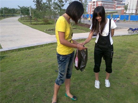 下午四点,太阳依旧有点炙热,可这些丝毫不影响09会计6班同学们的积极性。四点十分,班长点完名之后,便把环保垃圾袋发与同学们手中。同学们两人一组,一人捡垃圾一人提袋子。待分好区域之后,大家便忙碌起来。