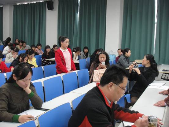 2012年11月7号下午四点,经贸系在1102多媒体教室举行了2012-2013学年第一学期期中师生座谈会。出席座谈会的有经贸系主任翁嘉晨、副主任宋君远、副书记陈开兵及各个教研室的教研室主任和教师代表。经贸系所有班级每个班级派出了2个学生代表参加座谈会。